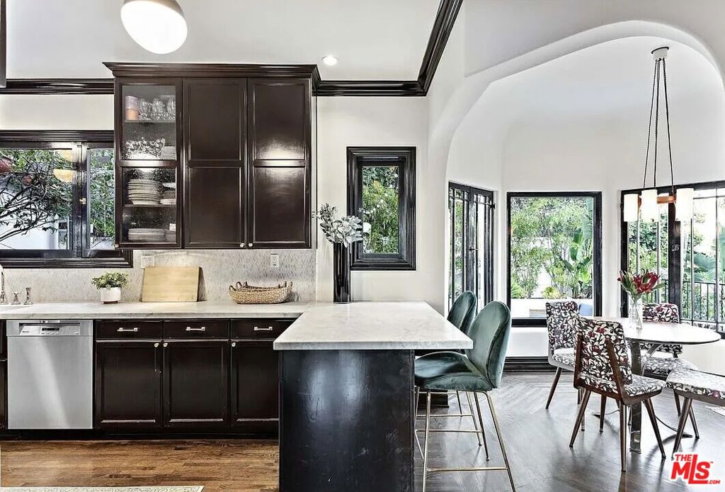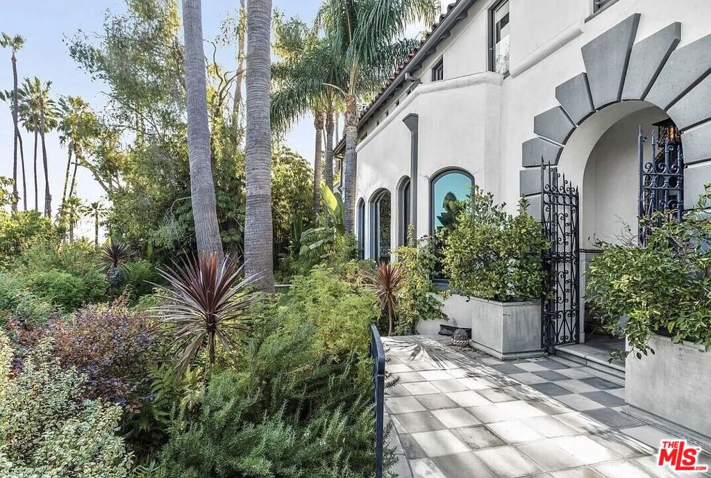 Experience the timeless allure of Hollywood with this crown jewel estate in the historic Whitley Heights. Perched on a fully gated and secured promontory, this authentic Mediterranean compound offers a secluded haven of elegance and privacy. Inside and out, exquisite architectural details blend seamlessly with bold, designer-driven updates. From the striking facade and welcoming foyer, a sophisticated dining room overlooks the lushly landscaped front lawn and garden. The expansive double-length living room, featuring barrel ceilings and oversized windows, is ideal for relaxing or entertaining. Outdoors, enjoy the ultimate private retreat with a sparkling pool, spa, and multiple lounge areas, all surrounded by swaying palms and endless blue skies.