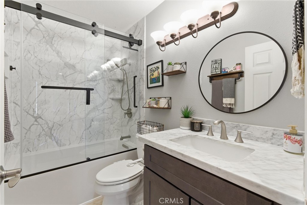 Single-level living with no interior steps (elevator access from your parking space), a corner unit location, an incredible 500 sq ft patio, and no direct neighbors on three sides — this is arguably the BEST property available in all of Seabridge! Welcome to effortless coastal living in the highly sought-after, guard-gated Seabridge community in South Huntington Beach. Ideally situated on a prime corner location, this stunning 1-bedroom, 1-bath home showcases beautiful panoramic views from your expansive 500 sq ft balcony and offers an exceptional blend of modern comfort, coastal luxury, and resort-style amenities just minutes from the beach. From the moment you step inside, you’re greeted by an abundance of natural light that creates an open, airy feel throughout. Luxury vinyl flooring flows seamlessly through the living spaces, complementing the thoughtfully designed layout and enhancing the home’s modern coastal aesthetic. The spacious entry enhances the overall feel of the home, while the living room is both welcoming and refined, effortlessly connecting the kitchen, dining, and living areas — ideal for entertaining. The beautifully updated kitchen features stainless steel appliances and plantation shutters. The spacious bathroom has been tastefully renovated with a remodeled tub-shower featuring a glass enclosure, elegant tile work, and a modern vanity. The primary bedroom is generously sized, offering a peaceful private retreat. Additional features include interior laundry, ceiling fans, central heating, dual-pane windows, plantation shutters, and a layout that prioritizes privacy and tranquility. Large sliding glass doors frame serene views of your massive private balcony and lush greenbelts with mature trees, creating a peaceful backdrop and a true sense of retreat within the community. This home presents a rare turnkey opportunity, ideal as a primary residence, second home, or investment property. Seabridge is renowned for its resort-style living, offering multiple swimming pools and spas, tennis courts, and beautifully maintained grounds with scenic walking paths throughout. Enjoy the convenience of being just a short bike ride to the beach while remaining close to top-rated schools, shopping, dining, and everything Huntington Beach has to offer. This is a special opportunity to own a beautifully updated home in one of Huntington Beach’s most desirable gated communities — where everyday living feels like a vacation.
