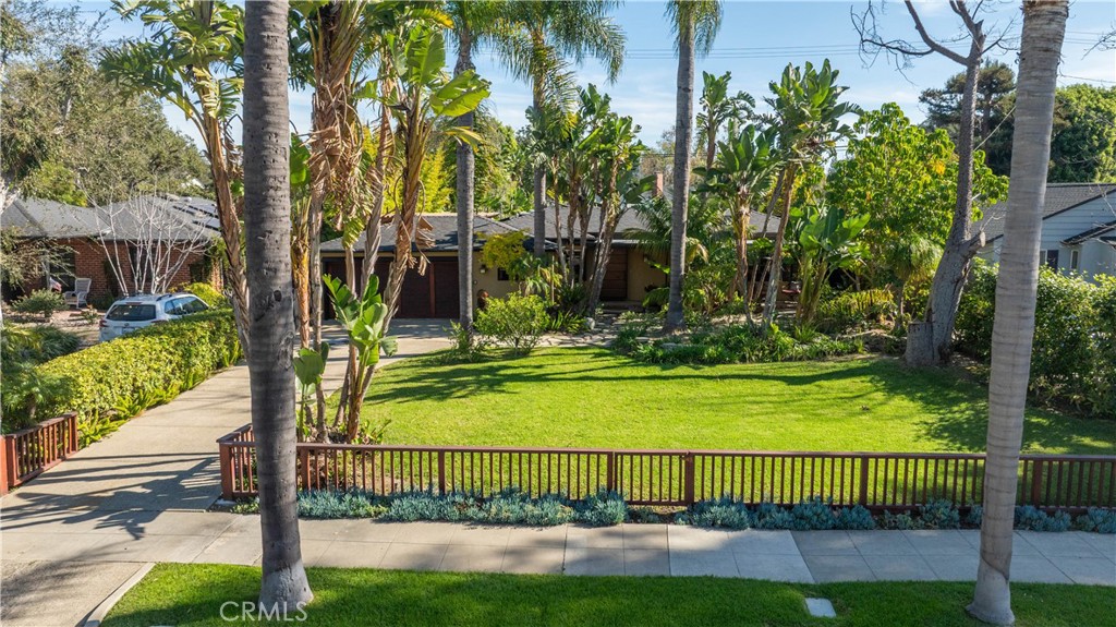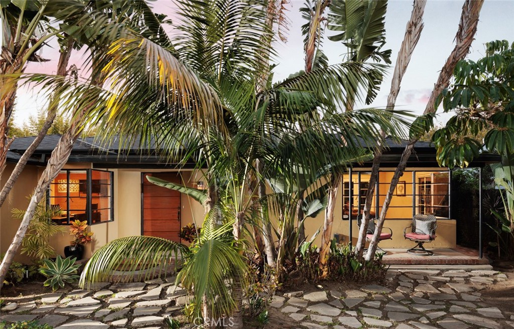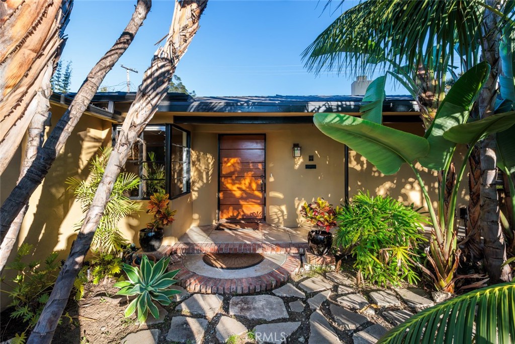 Tropical serenity surrounds this Art Deco–inspired, Asian-influenced, single-story Floral Park historic home, the Dr. M McMurray house, built in 1936 and with Mills Act tax savings! A sophisticated blend of contemporary Pacific design and classic Moderne architecture, this residence offers an exceptional fusion of style, comfort, and seamless indoor-outdoor living, with captivating views from nearly every window. Rich hardwood floors, crown moldings, French doors, skylights, and thoughtfully selected natural finishes set a refined tone throughout. The formal living room showcases a coved ceiling, a dramatic bronze glass mosaic fireplace, and French doors to a secluded, trellised patio, an intimate retreat! The formal dining room features grasscloth wallpaper in a soft, earth-tone palette, expansive corner windows, and an adjoining office niche for added versatility. The sleek, contemporary kitchen, ideal for the Zen-inspired gourmet chef, boasts quartz countertops, a bronze glass mosaic tile backsplash, terrazzo flooring, high-end stainless steel appliances, and custom solid-wood cabinetry in deep, rich tones with abundant storage. Both the kitchen and dining room open through French doors to a fabulous outdoor kitchen and grilling area, creating a natural extension of the home and an ideal setting for entertaining. Three spacious bedrooms each feature French doors leading to the lush tropical grounds. The primary suite opens to a private deck with a Japanese-style soaking tub, offering a tranquil spa-like escape. Two beautifully remodeled bathrooms feature luxurious finishes and timeless design. French doors and inviting views from nearly every room lead to a spectacularly private oasis, complete with hidden garden vignettes, serene patios, wooden pergolas, vibrant tropical landscaping, and expansive lawn space. A spacious Tuff Shed in the rear corner provides convenient storage. Additional highlights include seller-owned solar to offset most electrical costs, a newer roof installed approximately five years ago, and the significant property tax savings afforded by the Mills Act. Set back on a very private 10,519 square foot lot in sought-after Historic Floral Park, a neighborhood known for its architecture, where it is easy to get involved in their many activities and events such as their Home and Garden Tour in April or any of the many holiday events! This is a rare opportunity to own a truly special home. Prepare to fall in love and make it yours.