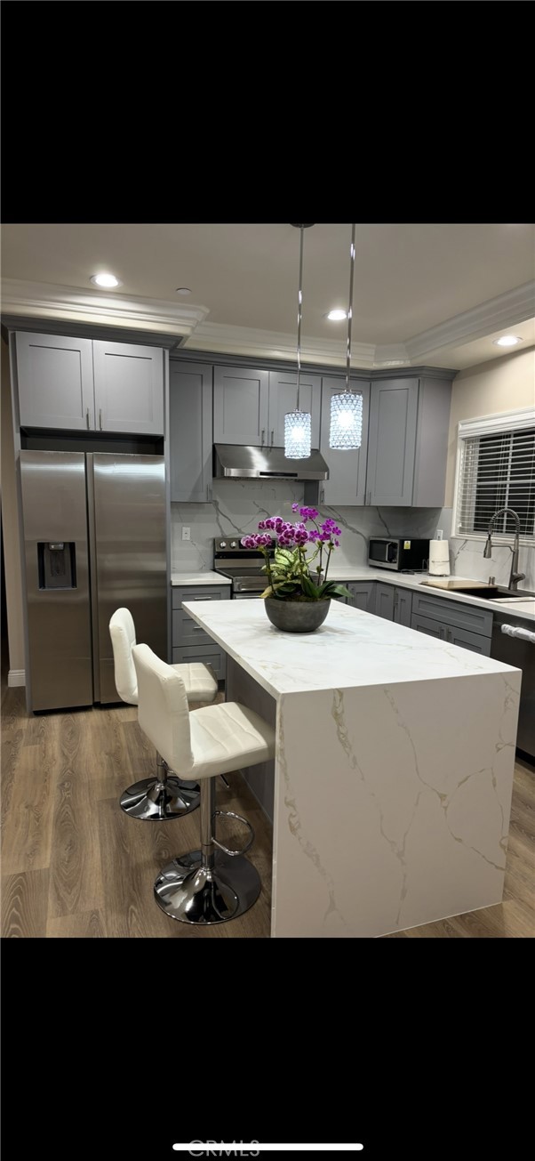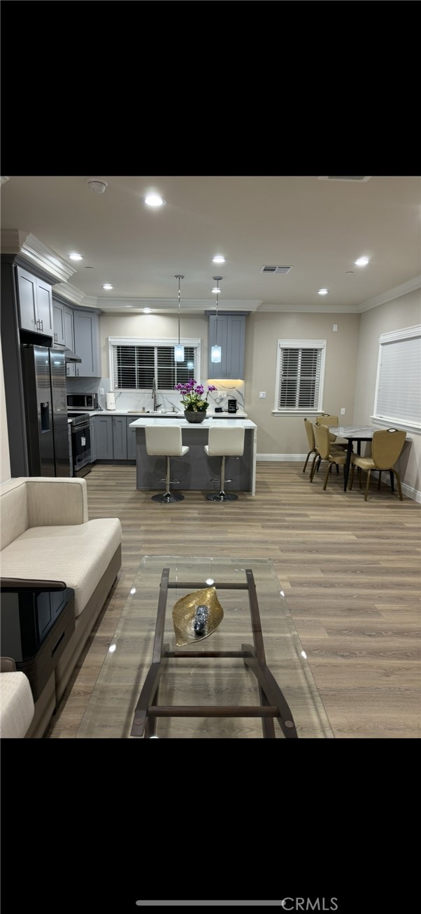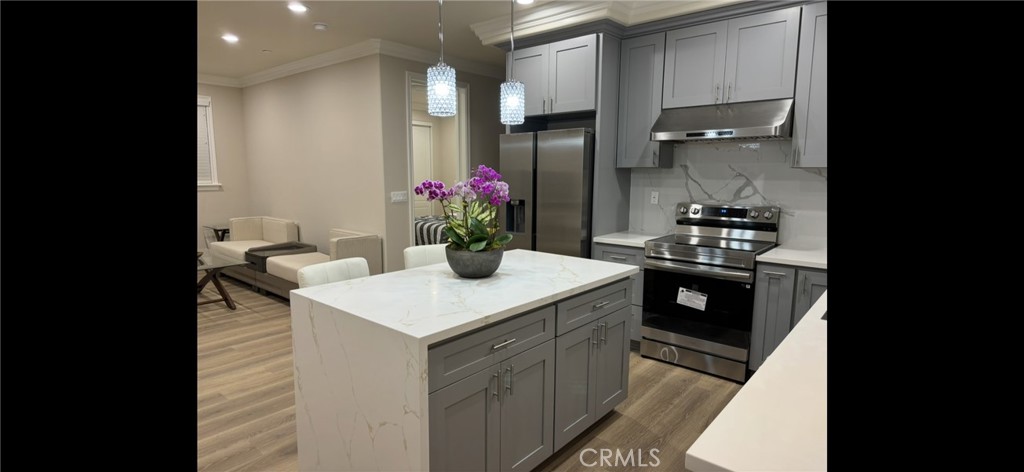 This stunning, newly constructed & FULLY FURNISHED 3-bedroom, 2-bath, offering the kind of space, privacy, and high-end finished custom home. This house is located in a perfect 10 Rated Mark Keppel High School. The open-concept floor plan was thoughtfully designed to balance both elegance and comfort. The chef-inspired kitchen is outfitted with stainless steel appliances and expansive island.