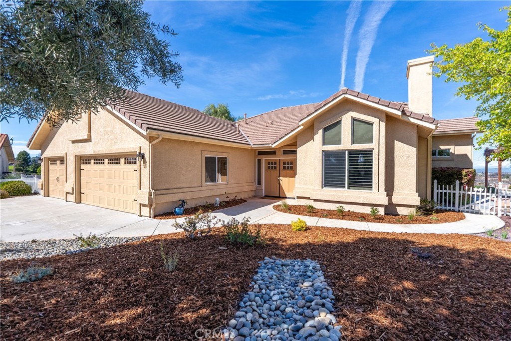 Perched to capture some of the most breathtaking views in town, 2039 Promontory is a remarkable offering in the prestigious Rolling Hills Estates of Paso Robles. Set on a beautifully landscaped 0.45± acre lot, this 2,284± sq. ft. home features 3 bedrooms and 2.5 baths, thoughtfully designed to blend comfort, privacy, and style. The well-conceived floor plan places the serene primary suite on its own wing, complete with a spa-inspired, upgraded bath. Guest bedrooms are positioned on the opposite side of the home, providing ideal separation. Engineered hardwood flooring flows throughout, complemented by granite countertops, custom built-ins, and a walk-in pantry. The kitchen, featuring a center island with seating for four features an updated magnetic induction cooktop that is an energy saver, and a built-in desk, opens seamlessly to a cozy family room that showcases the sweeping views. Enjoy gatherings in the formal dining room or relax by the fireplace in the inviting living room. Outdoors, the property truly shines. The expansive side garden offers fruit trees and raised vegetable beds, creating a private, resort-style setting. The backyard is ideal for entertaining while taking in the stunning vistas—and offers ample space to create your own outdoor vision, whether that may be a pool, outdoor kitchen, garden retreat, or play area. A charming gazebo draped in blooming wisteria provides a peaceful escape. Additional highlights include OWNED SOLAR, a finished three-car garage with custom cabinetry, potential RV parking along the side, and a prime location at the end of a cul-de-sac within city limits. Schedule your private showing today and experience all this exceptional home has to offer.