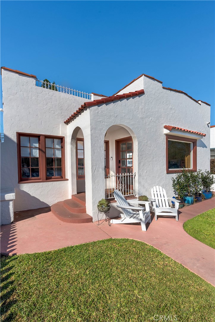 Welcome to Charming and Recently Updated 205 Argonne Ave, a Spanish-style bungalow built in 1924, with tons of upgrades, and within steps of Belmont Shore’s quaint and bustling Second Street. Many high-ticket items have been installed this past year, such as New Copper Plumbing, a Tankless Water heater, removed the old wiring and installed all New Electrical, including a New Electrical Panel and 220V in the Garage, a New Primary Addition, including a New, Expanded Primary Bathroom Addition with Stand-Alone Soaking Tub and Separate Shower, Restored the Guest Bathroom with new tile floor, installed New HVAC A/C and Heating, New Landscaping Front and Back, New Gates, New Sprinkler System, Painted the entire House and Updated the Roof. The classic character of this home welcomes you as you enter through the porch’s archways into the spacious front room. Gorgeous hardwood floors and lots of natural light bring warmth throughout the living and dining areas. The large kitchen holds space for a breakfast nook or table and has recessed lighting and stainless steel appliances. Two charming bedrooms and the Remodeled Hall Bathroom lay towards the front of the house, while the New Primary Suite is situated in the back of the house. This home provides for a great outdoor lifestyle with a porch, fresh lawn and blooming roses in front of the house and a private back patio and yard in the back of the house, ready for gatherings and long summer nights. The Beach is within walking distance, and you’ll be surrounded by trendy restaurants, coffee houses, bakeries, and endless shopping.