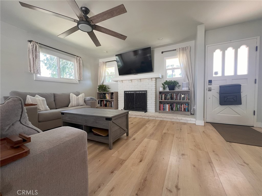 Discover this tastefully updated desirable corner lot pool home with permitted detached ADU in a quiet, distinct mid-century neighborhood in Canoga Park. Built by developer George J. Heltzer & Associates between 1957 and 1958, 20933 Hemmingway Street features updated 3-bedrooms and 2-baths, with a bright, open concept living room, dining area and kitchen. – Inside, enjoy a bright, open layout with wide-plank flooring through the main living areas, creating a clean, modern feel that’s easy to live in and great for entertaining. The updated kitchen anchors the home with warm wood cabinetry, designer-selected finishes, and stainless-steel appliances that blend style and function. – The primary bedroom provides a comfortable retreat with an updated en-suite bathroom featuring new tile flooring and a spacious walk-in shower with glass enclosure. Additional bedrooms offer flexible use for guests, work-from-home, or everyday living. A refreshed secondary bathroom includes dual vanity and a tub/shower combination with contemporary finishes. – Additional interior features include custom built-ins, smooth ceilings, fireplace, recessed lighting, ceiling fans, Cat 6 and newer dual-paned windows and sliding glass doors that create a bright and inviting living space which effortlessly flows outside to a modern, clean backyard. – As you step outside to your backyard oasis, the sparkling pool sets the stage for summer fun, weekend gatherings, and relaxing evenings, with additional yard space for lounging, play, or outdoor dining. The side yard offers convenient storage options. With walls wrapped in Jasmine and Mandevilla, and mature fruit trees including Mandarin Oranges, Pluot, Saturn Peach, Lemon, and Lime, your backyard provides year-round beauty and treats the whole family will enjoy. – A newly built, approx. 400 sq. ft. detached ADU with its own address adds exceptional versatility. The ADU includes a private entrance, full kitchen, bathroom, and flexible living area—ideal for guests, extended family, or income producing opportunities. – Located minutes from The Village, LA Rams, Pierce College, CSUN, great dining, schools, and public transportation. The property also benefits from leased solar panels that help reduce electricity costs. – Buyer to verify all information including square footage, bed/bath count, and permits to their satisfaction.