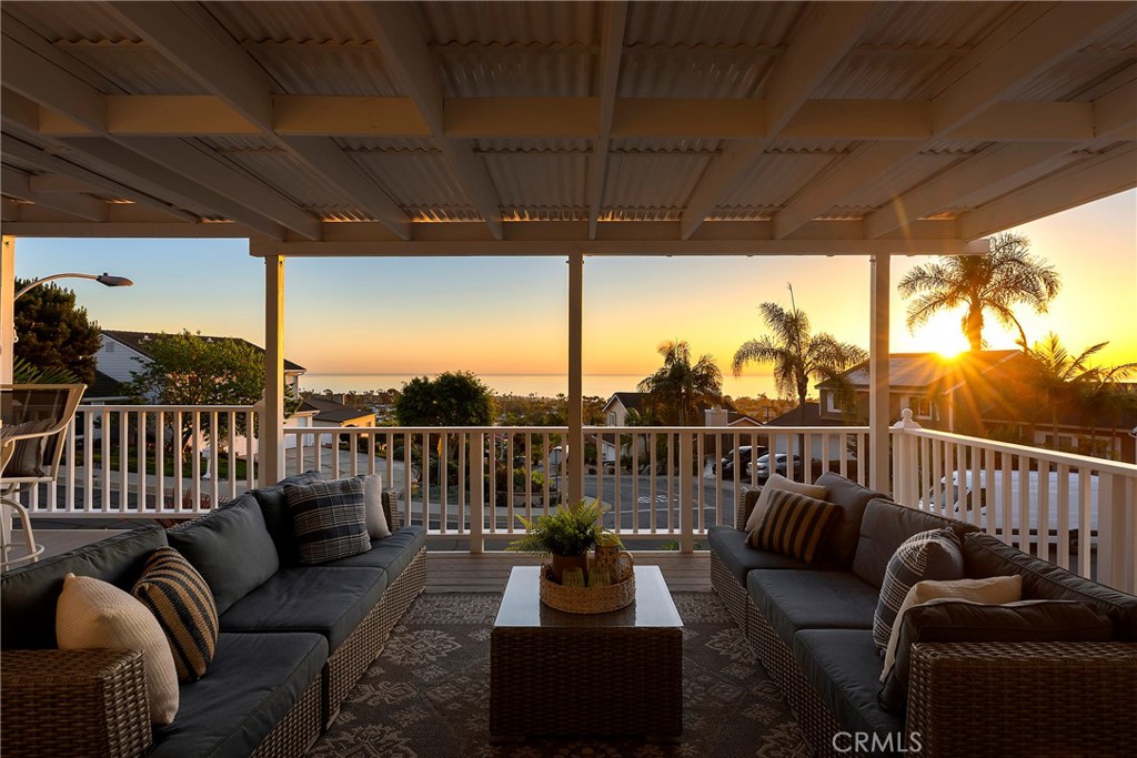 Perfectly-situated high above on a quiet cul-de-sac, this ocean-view home is positioned to capture major sunset, island & crisp ocean horizon views from inside & out. Upon arrival, pride of ownership is apparent upon first impression. Inside the double glass entry doors, high vaulted ceilings draw you into a generous great room. A wide-open living space offers a remodeled kitchen, massive living room with custom built-ins & fireplace, informal dining, enhanced by dramatic ceilings & major ocean views. The recently-remodeled kitchen is anchored by a massive island with ocean-view bar seating, major under-counter storage, stainless appliances, & custom cabinetry – a very well-appointed entertainer’s kitchen. Out the slider doors beyond, the shaded deck offers the most relaxing zone with a water feature, composite decking, & major views including a direct shot of San Clemente Island. Just off the great room, a fire-warmed flexible space offers a multitude of uses: den, formal dining, office, gym, etc. A dedicated laundry room & half bathroom service this area. French doors access the side patio with ocean-view spa & major potential with the open land above (room to develop). The major ocean-view bonus room (potential 4th bedroom) adjacent with space for pool table, large couch & wet bar offers an additional entertainment area with direct garage access to the oversized 3-car garage below. Upstairs, two ocean-view guest bedrooms share a viewing deck & full guest bathroom with dual sinks. The third primary suite is spacious with a fireplace, built-ins, walk-in shower, dual sinks & large closet. Other improvements: New LVP flooring throughout, motorized shades & shutters, French doors, new glass in entry doors, dual-pane vinyl windows, recessed lighting, major kitchen remodel, new paint inside & out, new heater & water heater, spa, garage doors/motors & epoxy floors, driveway pavers, hard & softscaping, fountain, iron fencing, patio cover, expanded upper deck and composite decking on both. A true ocean-view opportunity with major indoor & outdoor space, sunset & island views, no power lines, near hiking tails, great restaurants & cafes, bikable to world-class surf at Trestles, walkable to the 2.5 mile beach trail, San Clemente Pier & sandy nearby beaches. This is an exceptional home – meticulously kept by its owners and located in one of San Clemente’s most desirable areas.
