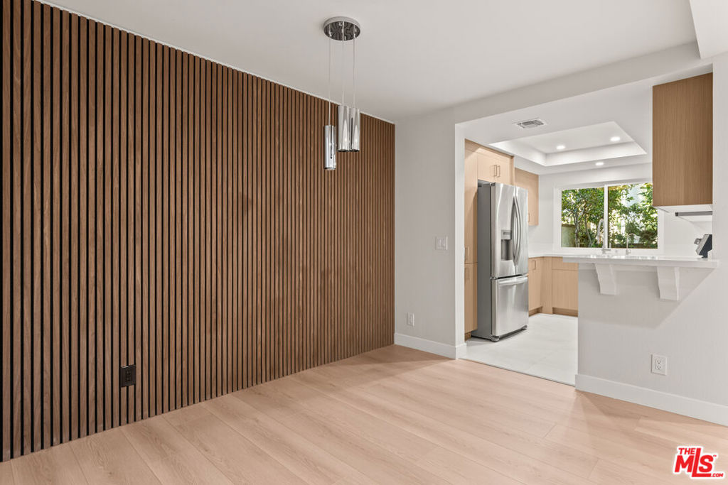 Completely reimagined and never lived in since its recent designer remodel, this stunning 2-bedroom, 2-bathroom townhouse with a dedicated family room is a rare, turnkey offering within the gated Warner Club Villas community. The entry opens to wide-plank light oak flooring, recessed LED lighting, and a bright, modern palette that feels both sophisticated and inviting. The expansive living room is anchored by a stylish fireplace wrapped in textured stone with a custom wood mantel, creating a warm yet contemporary focal point. An architectural floor-to-ceiling slatted wood accent wall defines the dining area, adding dramatic visual interest and a high-end, custom-home feel rarely found in townhome living. Above, sleek modern pendant lighting complements the clean lines and thoughtful design. The fully renovated kitchen is equally impressive, featuring custom flat-panel wood cabinetry, crisp stone countertops with a full-height backsplash, stainless steel appliances, and a breakfast bar that opens seamlessly to the living space. A recessed tray ceiling with integrated lighting adds depth and polish, while a large window frames lush greenery, bringing natural light into the heart of the home. Both bathrooms have been completely rebuilt with spa-inspired finishes, showcasing custom wood vanities, stone countertops, modern fixtures, and oversized walk-in showers with floor-to-ceiling stone, frameless glass enclosures, built-in niches, and designer mosaic flooring delivering a refined, boutique-hotel experience. The bedrooms are generously sized and serene, offering new flooring, smooth walls, and abundant natural light. The primary suite provides a calm retreat, while the secondary bedroom is perfect for guests, family, or a home office. Step outside to a private, gated front patio, ideal for morning coffee, al fresco dining, or evening relaxation extension of the living space that enhances everyday lifestyle. Additional highlights include direct access to a private attached two-car garage, plentiful guest parking, and resort-style community amenities including a pool, spa, lighted tennis courts, and beautifully maintained grounds. Ideally located just moments from The Village, Westfield Topanga, Warner Center Park, fine dining, entertainment, and convenient access to the 101 freeway, this residence offers modern luxury, thoughtful design, and true move-in-ready living in one of Woodland Hills’ most desirable communities.