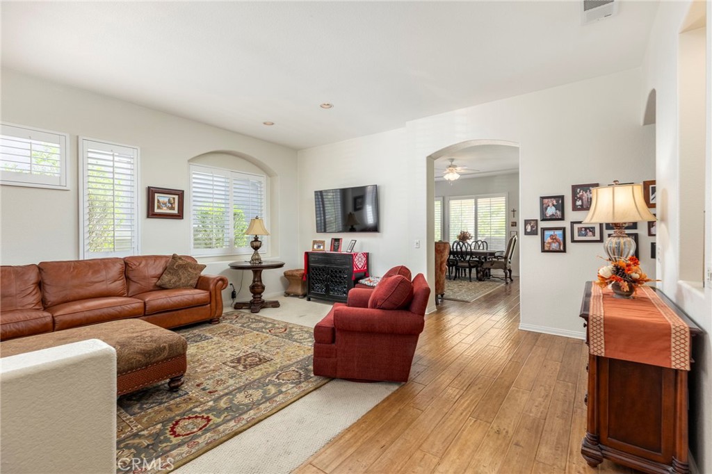 Welcome to 2204 Birdie Drive located in Sun Lakes Country Club, a premier guard-gated 55+ active adult golf community. This beautifully upgraded single-story home offers 2,018 square feet of comfortable living space with 2 bedrooms (both are private suites), 3 bathrooms, and an open inviting floor plan designed for everyday living and entertaining. As you enter this lovely home, the spacious living and formal dining rooms greet you with style and a real sense of warmth. The office/den area allows you flexibiity to suit your lifestyle – perfect for a hobby room, reading retreat, or additional guest space. The beautifully remodeled kitchen has been thoughtfully designed with ample custom cabinetry, extended island, quartz countertops, and stainless-steel appliances, making meal preparation both functional and enjoyable. Adjacent to the kitchen, the extra living space creates the perfect setting for any gathering. The spacious primary suite provides a relaxing retreat with a spendid views of the lush backyard, a private bathroom and ample closet space. A well appointed guest bedroom suite provides privacy for visitors and features its own bathroom that will soon have a brand-new shower enclosure and toilet installed. The laundry room with utility sink offers access directly into the garage. Throughout the home you will find plantation shutters, gorgeous hardwood flooring that add a touch of warmth and character. The newer A/C unit provides additional comfort when needed. Step outside to enjoy thoughtfully designed outdoor living spaces that allow you to relax, entertain or just take in the beautiful surroundings. The oversized front patio features beautiful views of the mountain range ideal for morning coffee or an evening glass of wine. The inviting backyard and patio area provides a tranquil setting with peaceful sounds from the built-in water feature/pond. The impressive gentle ridge supplies added privacy in a park-like setting. Barbecuing this summer on the built-in barbecue island is sure to elevate any family gathering and make outdoor entertaining a true delight. Residents of Sun Lakes Country Club enjoy resort-style amenities including 2 golf courses, 3 clubhouses, 3 swimming pools, fitness centers, tennis and pickleball courts, 2 restaurants, and a wide variety of clubs and social activities-creating a vibrant lifestyle. This home offers the perfect blend of comfort, community, and convenience. Come take a look today!
