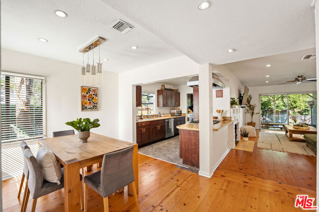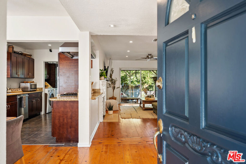 South of the Boulevard and situated on a spacious corner lot, this charming 4-bedroom, 2.5-bath home is nestled in a sought-after Woodland Hills neighborhood. The home is conveniently located within a stone’s throw of award-winning schools and some of the best shopping and dining destinations in the San Fernando Valley, including The Village and Westfield Shopping Center. It’s also just minutes from the Rams practice facility, making it an ideal location for sports enthusiasts. Enter inside to an open-concept layout featuring an open kitchen with a breakfast bar and dining area. The versatile den adjacent to the living room can serve as a fourth bedroom, office, or formal dining space. The expansive living room showcases beautiful hardwood floors throughout the home and a cozy fireplace. Each bedroom is generously sized, including the primary suite, which features an ensuite bath and patio doors leading to the outdoor patio area. The front and backyard are a true oasis, boasting an expansive and gorgeous new landscape design. The lush greenery and thoughtfully crafted layout provide serene setting for relaxation or entertaining. A covered patio, playset, and ample open space make the outdoor area perfect for gatherings. The oversized two-car garage has been drywalled and outfitted with plumbing for a bathroom, plus a kitchenette, making it ideal as a guest unit or recreation room.With easy access to the Westside and just 20 minutes to the ocean, this home offers a perfect blend of convenience, luxury, and comfort.