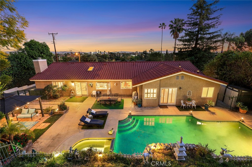 LOCATION! LOCATION! LOCATION! This extraordinary estate is nestled in the tranquil foothills of prestigious Bradbury and sits on an expansive half-acre lot that offers the perfect balance of San Gabriel Mountain privacy and convenient access to Los Angeles and Pasadena. Truly a rare and highly sought-after find, this property features two dwellings (single family plus a workshop) with separate entrances and energy-efficient solar panels. The exterior boasts exceptional curb appeal with a classic tile roof and an impressive circular driveway leading to grand interiors defined by soaring ceilings, intricate crown molding, and a luxurious blend of marble and premium hardwood flooring that creates an airy and sophisticated atmosphere throughout. The main residence offers 4 spacious bedrooms and 2.5 bathrooms including a formal dining room and a grand living room with a layout that perfectly separates elegant entertaining from comfortable family life. At the heart of the home is a warm and inviting family room that seamlessly connects to a fully equipped gourmet open-concept kitchen where a functional center island overlooks the serene backyard oasis. The oversized primary suite serves as a private sanctuary with direct sliding glass door access to the poolside retreat. Outside, the meticulously landscaped backyard is a true showstopper featuring a sparkling pool and spa set against natural rock walls and a charming gazebo providing the ultimate resort-style space for shaded relaxation. Spacious workshopalong with its own wide driveway and a private yard offers a lot of potential, which can possibly be converted to a living quarter. Deck captures breathtaking panoramic city light views. This prime location also offers endless lifestyle inspiration with close proximity to scenic hiking trails and lush parks allowing for a healthy nature filled lifestyle with ultimate privacy. Whether for multi-generational living, high-end entertaining, or a prime investment opportunity, this is an incomparable gem in Bradbury and you are invited to schedule your private showing today.