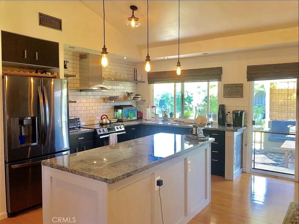 Beautifully upgraded single-level home tucked away on a quiet cul-de-sac in Laguna Hills with no HOA! This 3-bedroom, 2-bathroom residence offers an ideal blend of comfort, functionality, and indoor-outdoor living. The remodeled kitchen is the heart of the home and features granite countertops, stainless steel appliances, a large center island with pendant lighting, and ample cabinetry. The open layout flows seamlessly into the dining and living areas, highlighted by vaulted ceilings and a cozy fireplace that anchors the space. Bamboo and ceramic flooring run throughout the home, complemented by central air conditioning and heating, recessed lighting, and an interior laundry area for added convenience. The bedrooms are well-proportioned and filled with natural light, while both bathrooms are thoughtfully updated. Step outside to a private backyard designed for relaxation and entertaining, complete with a covered patio, generous lawn space, mature landscaping, and RV access. The yard offers plenty of room to garden, play, or host gatherings. Additional features include a two-car garage and a wide driveway. The home is ideally located near community parks, tennis courts, schools, shopping, and everyday conveniences, while still offering the privacy of a cul-de-sac setting.
