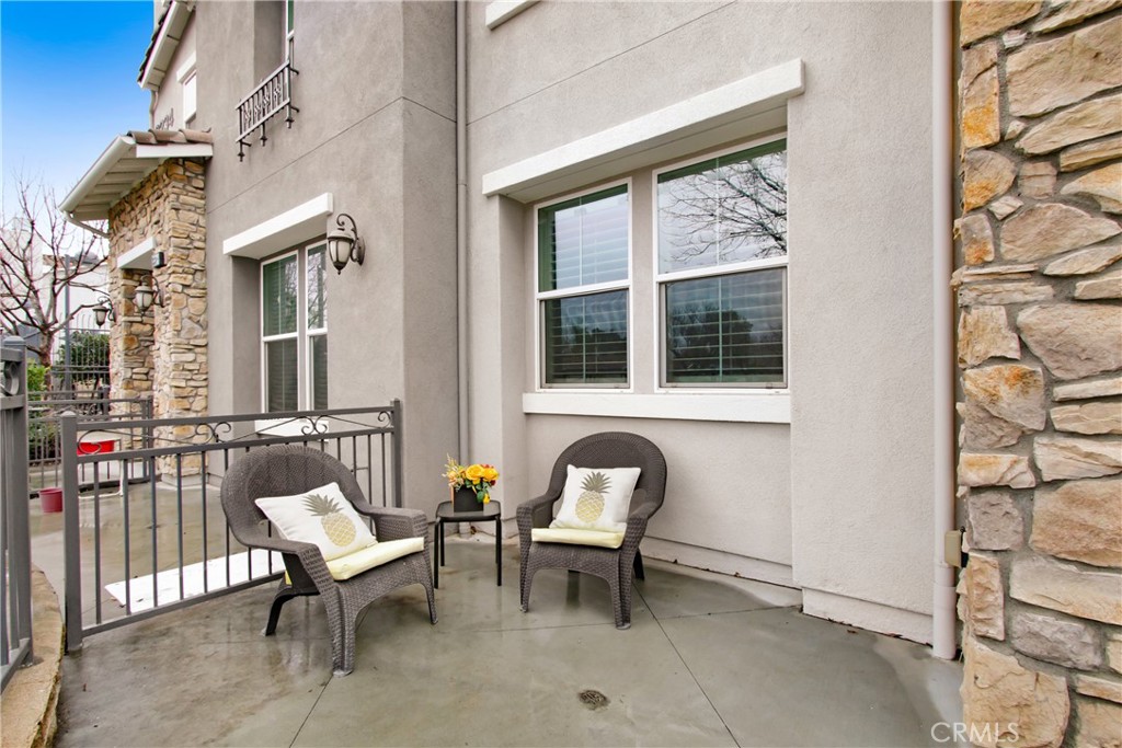 Welcome to this stunning two-story townhouse in the private community of The Marketplace, situated in the heart of Central Simi Valley. Built in 2014, this beautifully maintained home offers 3 bedrooms, 2.5 bathrooms, and 1,644 sq. ft. of living space, along with several recent upgrades, including new vinyl flooring in the living room and kitchen, epoxy flooring in the garage, and a Tesla charger installation. The first level features a bright and open floor plan with newer paint, new LED lighting, and plantation shutters throughout. The spacious family room, complete with a cozy fireplace, seamlessly connects to the dining area and a gourmet kitchen equipped with granite countertops, a full backsplash, stainless steel appliances (stove, microwave, trash compactor, and dishwasher), and a generous pantry. Upstairs, the primary suite boasts a large walk-in closet, ceiling fan, and an en-suite bathroom with dual sinks and a stylish sliding barn door entry. Two additional bedrooms, each with ceiling fans, are conveniently located near a well-appointed hallway bathroom with dual sinks. A versatile loft area provides additional space for a home office or relaxation, while the upstairs laundry room adds everyday convenience. The attached 2-car garage offers side-by-side parking, durable epoxy flooring, and a Tesla charger. Residents of The Marketplace enjoy access to fantastic community amenities, including a pool, spa, BBQ area, and HOA-covered water. Ideally located near shopping centers, and restaurants, and with easy access to the 118 Freeway, this home combines comfort, convenience, and modern upgrades. Don’t miss your chance to call The Marketplace home!