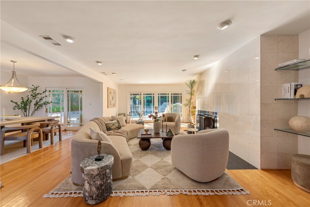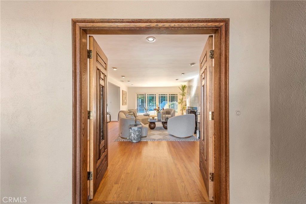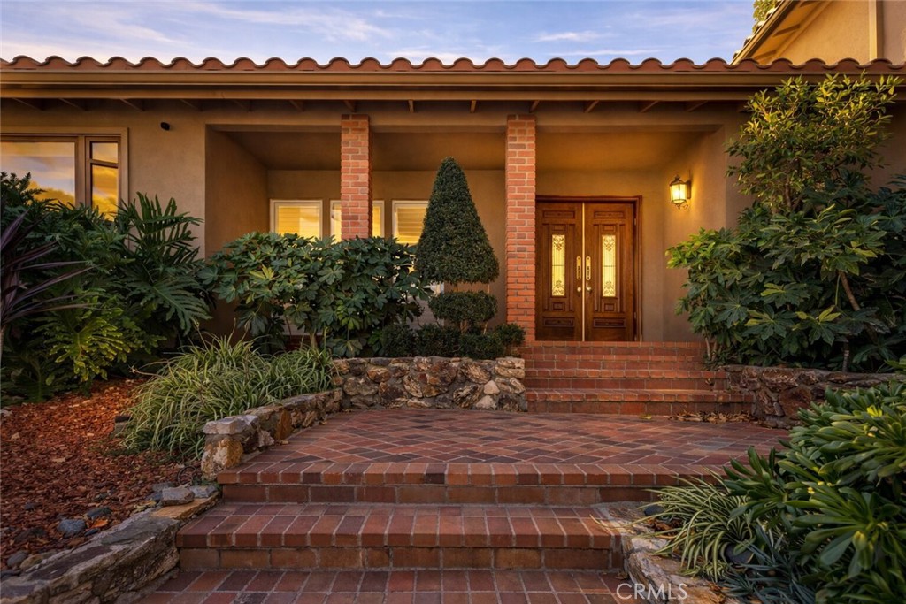 Stunning multi-level retreat nestled in the hills, offering privacy, lush surroundings, and a seamless indoor-outdoor lifestyle. Enter through the double-door entry into a thoughtfully designed home where natural light flows throughout the main living spaces. The layout is ideal for both everyday living and entertaining, with the kitchen and living room located on the main entry level, while bedrooms and additional living areas are intelligently separated across multiple levels for added privacy and flexibility. The home has been extensively maintained and improved, featuring a recently replaced roof, upgraded electrical systems, a tankless water heater, serviced HVAC, new stucco, and completed attic insulation. The backyard is a true sanctuary, highlighted by a private PebbleTec pool and spa with separate heating systems, updated pool equipment, and beautifully landscaped grounds with mature fruit trees, including lemon, orange, grapefruit, fig, and lime. Additional features include a bar/den and a dedicated large theater screening room, complete with a professional, motorized Stewart Filmscreen, indoor laundry, direct-access garage with smart opener, exterior lighting, covered patio areas, outdoor speakers with Bluetooth connectivity, and remote-controlled shades. This special property blends comfort, function, and timeless character in a serene hillside setting—a rare opportunity not to be missed.