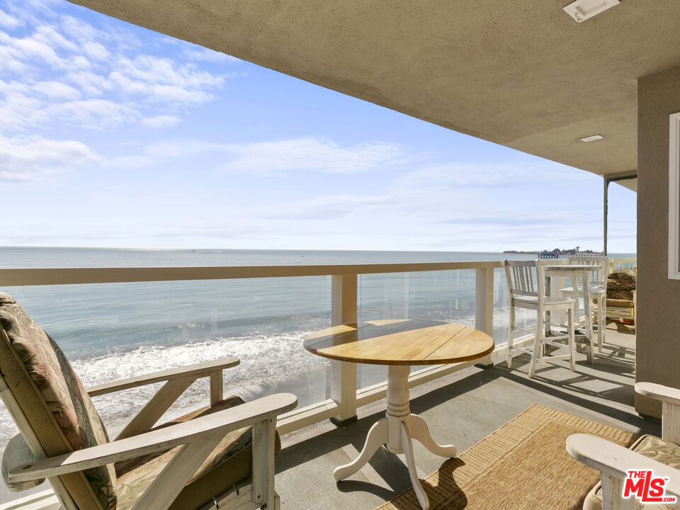 Luxurious oceanfront living at its finest in “The Malibu” complex! Discover the epitome of coastal elegance in this exclusive Carbon Beach penthouse corner unit boasting breathtaking 180-degree ocean and coastline vistas. Embrace the serene ambiance of this beautifully updated residence adorned with shabby chic furnishings and tile flooring throughout. Indulge in modern comforts featuring stainless steel appliances, granite countertops, and bespoke custom cabinetry in the spacious kitchen. Retreat to the master bedroom with its en suite bathroom showcasing a beautifully tiled shower, offering a private oasis within your home. Enjoy the allure of community amenities including an oceanfront pool, inviting BBQ areas, convenient laundry facilities, secured parking, and direct access to the sandy shores just steps away. Perfectly positioned in proximity to Malibu’s finest restaurants and shops, relish the convenience of fully furnished, turnkey living in this exceptional corner unit. Seize the opportunity to experience the pinnacle of Malibu coastal living. Make this remarkable residence your coastal sanctuary!