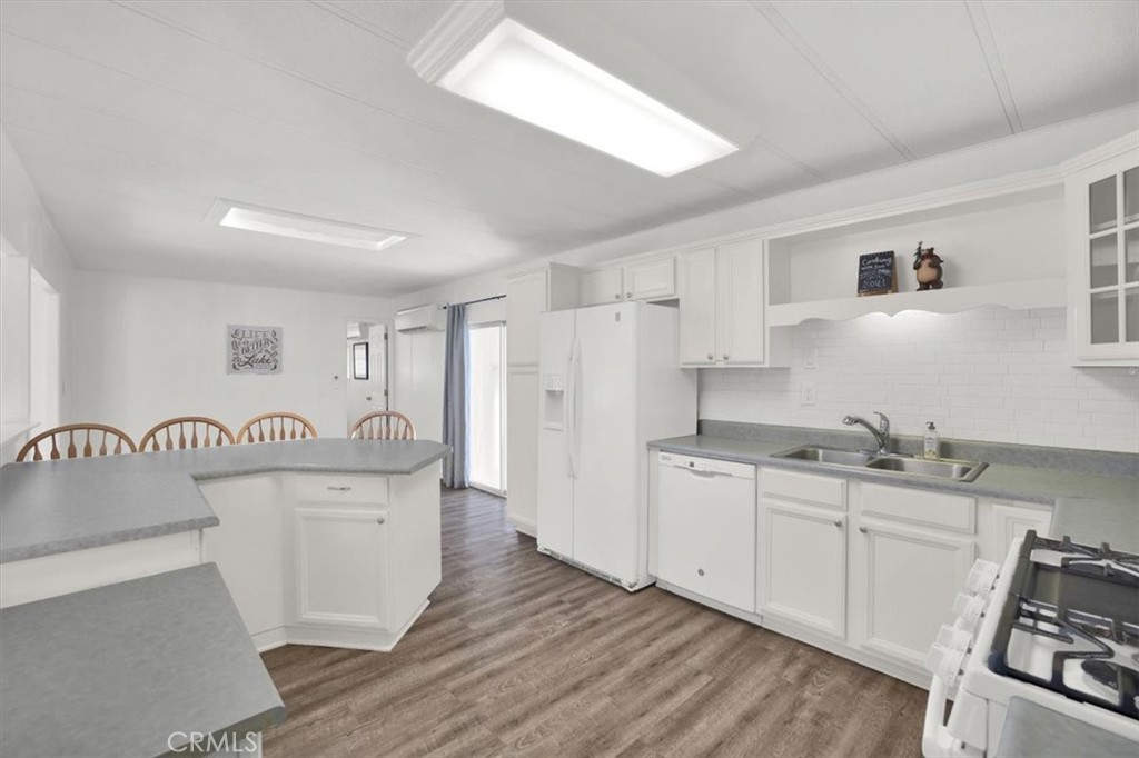 Have you been looking for affordable living in Southern California’s premier, gated, waterfront community of Canyon Lake? Well look no further! This two bed, two bath home has plenty of features with a favorite being views of the golf course, surrounding community, local mountains, killer sunsets and on owned NOT leased land!! Welcome to the meticulously maintained 22780 Skylink Drive!! Upon entering you’ll notice your living room offers an open and bright layout with updated wood plank vinyl flooring, 5″ baseboards, and a flow directly into your kitchen and dining area. The kitchen offers newer appliances, 5 burner gas cooktop with grill in the middle, white oak cabinets, subway backsplash, a raised bar peninsula seating area, and full extension roll out shelves in almost all cabinets that offer ample storage! Your master bedroom hosts a healthy footprint with ample closet space, new vinyl flooring and is located adjacent to the master bath with gorgeous counters and updated porcelain tile shower stall with grab bars for easy access and freshly painted cabinets! The spare bedroom has its own ensuite half bath with wainscoting, wood plank vinyl flooring and plenty of closet space! Off the main living area and kitchen is your living room offering plenty of natural light and fresh paint throughout. Other amenities include four new mini split AC system, new energy efficient 40 gal. water heater, indoor laundry, fenced rear yard area perfect for animals, covered aluminum patio in the rear, new rock/irrigation system/landscape, 6×10 storage shed, new mobile home piers under home for added support,raised 6 panel interior doors, covered parking with ample driveway space for an RV/boat/trailer and fresh exterior paint! Canyon Lake living offers a low 1.1% taxbase, 400 acre waterski/fishing lake, 16 parks most with beaches and playsets, basketball, baseball, tennis & pickleball, equestrian center, 18 hole golf course,pools, dog park, BMX pump track, golf cart friendly streets, slalom course, ski jump, restaurants, community events and so much more!