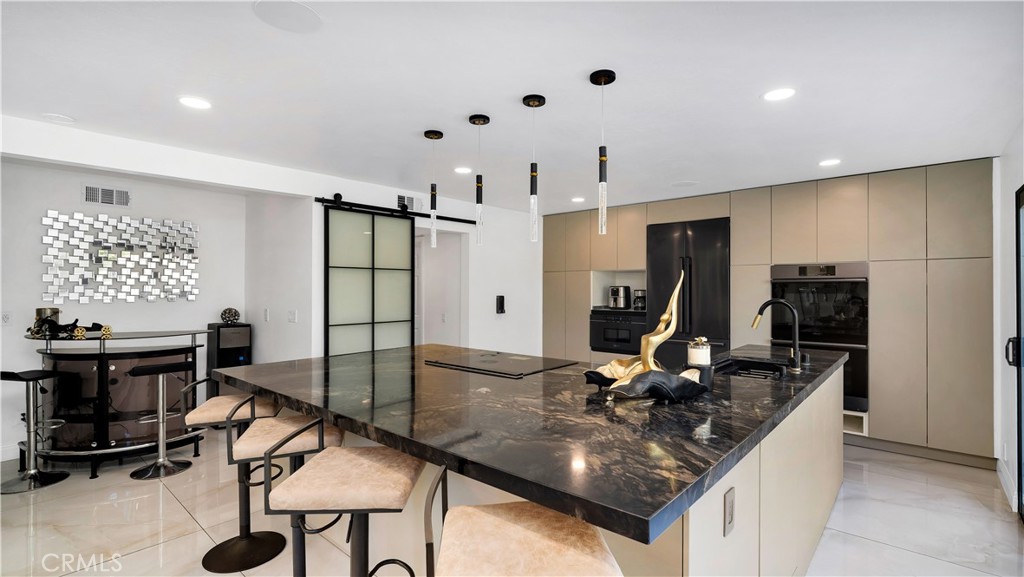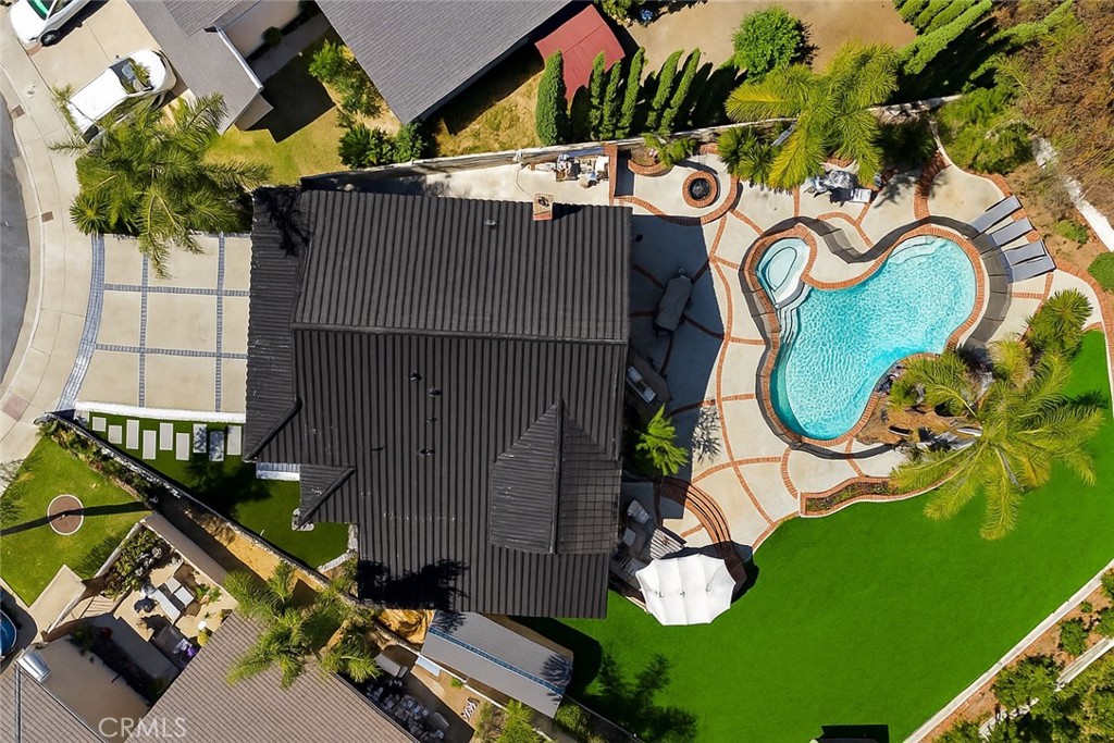 Welcome to your dream home! Nestled on a generous 13,000+ sq ft lot, this open concept residence with a pool & spa offers a rare combination of spacious luxury, modern upgrades, and resort-style living. Featuring 4 bedrooms—including two expansive master suites—and 3.5 beautifully updated bathrooms, this home is thoughtfully designed to accommodate both families and entertainers alike. Upon entry, you are greeted by white marble flooring throughout the main level, a striking black marble TV wall with a built-in electric fireplace that adds contemporary elegance to the main living space. Step inside a chef’s dream kitchen boasting high-end Dacor appliances, push-to-open custom cabinets with pull-out drawers, accent lighting, and an extra-large quartz stone island, providing both style and function. Enjoy additional luxury touches including a modern wine bar under the staircase, water-resistant laminate upstairs, and recessed ceiling lights that create a bright and welcoming ambiance in every corner of this home. The oversized glass sliding doors lead to your private backyard oasis, complete with lush tropical landscaping, swaying palm trees, a spacious swimming pool with a tranquil waterfall, and a relaxing jacuzzi. The expansive yard offers incredible versatility, with ample room to add a pickleball court, basketball court, or even build an ADU—ideal for multigenerational living or investment purposes.The front yard is fully remodeled with brand new turf, decorative white stones, and a water feature, ensuring beautiful curb appeal year-round. Don’t miss this rare opportunity to own a modern, resort-style home with endless potential!