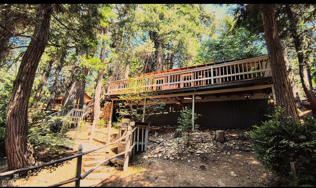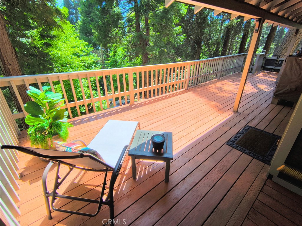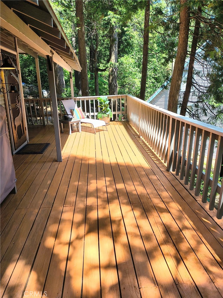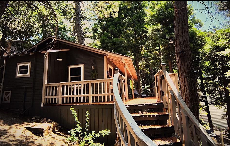 Escape the city for the serene views of century old pines in the highly desired Skyland neighborhood of Crestline. This charming 1926 cabin with beautiful, modern updates and timeless character is situated on a spacious, gently sloping lot. Curl up in front of the cozy fireplace with wood stove insert in the living room. Enjoy your morning beverage under the trees on the spacious deck before heading to Lake Gregory. This relaxing wooded setting offers a true mountain feel, while the cabin boasts vintage charm – but with thoughtful, artistic updates! Fresh, totally updated kitchen is fully equipped with soft close cabinetry w/ pull outs, new appliances, sink, hood vent and functional simplicity. Dedicated laundry room features a stack washer & dryer. Plenty of storage in the enclosed build-up, Driveway accommodates 3-4 vehicles. Hand carved screen door and hand painted tile backsplash both created by local artists! Roof – 5yrs old, Electrical box, wiring and breakers all updated 7 yrs ago, Hot water tank -2yrs old – still under warranty, Furnace/heater – 5yrs old still under warranty, Updated insulation – 2 yrs ago, New double pane windows -2 yrs ago, New light fixtures, Updated bathroom vanity, floor and brand new commode. This Gem is ready & waiting for your memories to happen! Note there are before (recent sanding and staining) and after deck pics.