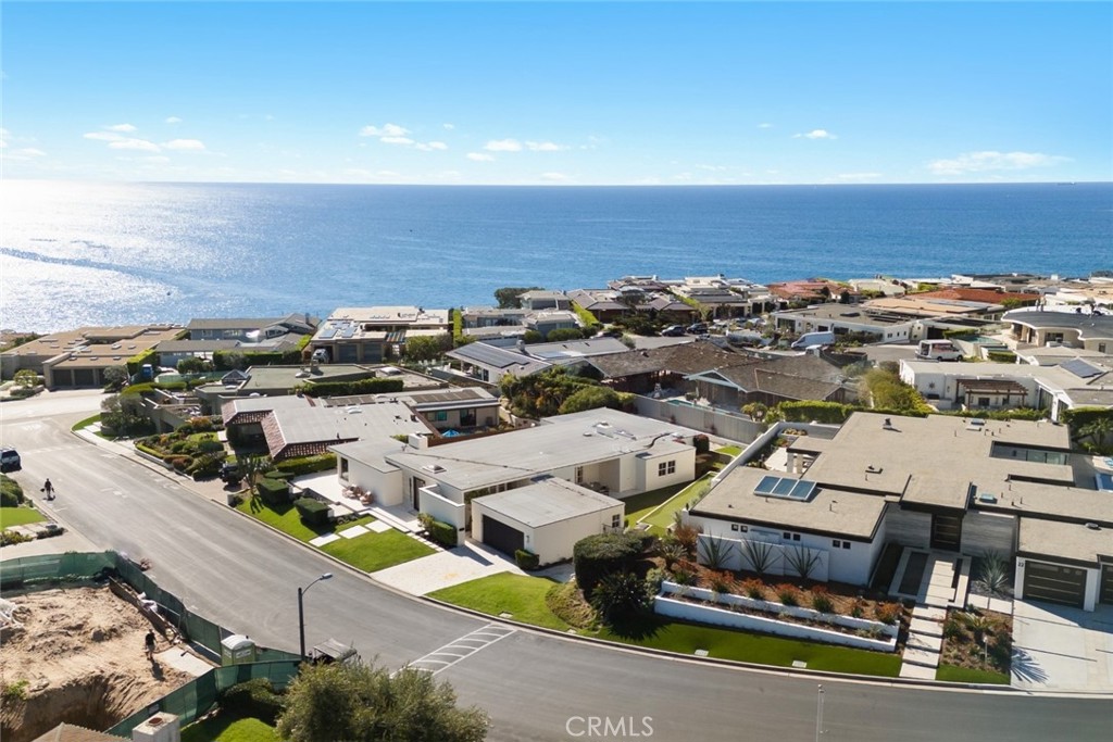 As waves break along Salt Creek Beach, evening lights shimmer after sunset and coastal bluffs rise to the summit of the towering Dana Point Headlands, all you have to do is relax and enjoy the views at this spacious single-level Hollywood Regency inspired contemporary home in Dana Point’s guard-gated Monarch Bay. Floor-to-ceiling windows and French doors welcome natural light and frame ocean views from most living areas. A formal entry with skylight leads to a living room that presents sit-down ocean and Headland views and a fireplace with custom marble surround while a formal dining room hosts a private patio, creating the ideal ambiance for elevated entertaining. Opening to two patios, the family room is bright, airy and warmed by a period-perfect wood-burning fireplace. A convenient pass-thru to the family room is just one of the amenities that awaits in the kitchen. Enjoy a nook with bay window, white cabinetry, stone countertops, marble backsplash, ample pantry storage, and top-tier appliances including a built-in refrigerator and an under-counter beverage refrigerator. Approximately 3,262 square feet, the three-bedroom, three- and one-half-bath design reveals understated sophistication with a soft white color palette that harmonizes with wood, stone and tile flooring, designer lighting fixtures, 11′ ceilings and subdued millwork including crown molding and wall panels. A two-car garage and dual-zone air-conditioning are also featured. Manicured grounds extend nearly 11,305 square feet, offering room for future expansion of the home if desired. A patio wraps around the front of the residence, the side yard includes bocce ball and a putting green, and a private view courtyard displays an in-ground spa and generous patio space for entertaining. Monarch Bay, renowned as one of Southern California’s most sought-after oceanfront enclaves, offers residents access to the world-class amenities of its Monarch Bay Beach Club. Experience on-the-sand umbrella and beach-towel butler service, volleyball and oceanfront dining. A dog park, private tennis and pickleball courts, and beach fire pits are also included, and there are no HOA dues. Dana Point’s harbor, Laguna Beach, The Ritz-Carlton, and coastal trails and premium golf are moments from home.