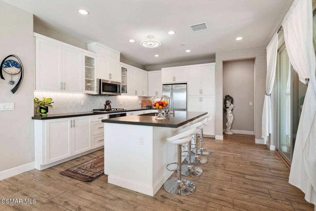 Ideally located on an elevated, corner lot in a prime location within the Pomelo neighborhood of the highly desirable 55+ gated community of The Grove, this beautifully designed 3-bedroom, 2.5-bath home offers 1,594 sq. ft. of modern, low-maintenance living. The open layout is filled with natural light and features wood-like ceramic tile flooring throughout the main living areas. A spacious chef’s kitchen anchors the home with stainless steel appliances, quartz countertops, and a large island with breakfast bar–perfect for everyday living and entertaining. The private backyard is thoughtfully designed with a California room, raised planter beds, artificial turf, creating an ideal indoor-outdoor retreat. The primary suite features a large walk-in shower, dual sinks, a bidet and a generous walk-in closet. The secondary bedroom is en-suite with a tub/shower combination, while the third bedroom–currently used as an office without a closet–offers flexibility for your lifestyle. Additional highlights include indoor laundry, ceiling fans in every room, a tankless water heater with instant hot water and an attached 2-car garage with EV Tesla charger. Residents enjoy resort-style amenities including pickleball courts, a massive putting green, pool and spa with cabanas, clubhouse, dog parks, BBQ areas, state-of-the-art fitness center, and library.
