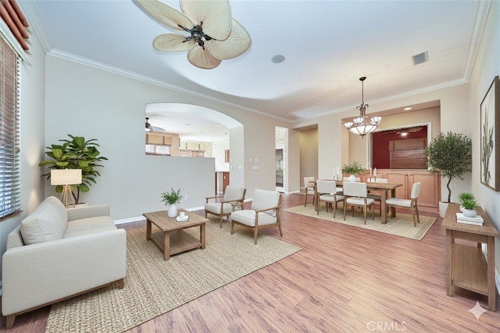 This one-of-a-kind former model home is perfectly positioned in a prime location within the community, capturing some of the best views available. Enjoy breathtaking 180-degree panoramic views of Temescal Canyon, city lights, mountains, and the Glen Ivy Golf Club. Perched at over 1,300 feet above sea level, this exceptional Sycamore Model residence showcases extensive upgrades and designer features throughout. The airy, light-filled interior offers 2 bedrooms plus a dedicated office/den with French doors, ideal for a home office or flexible living space. Highlights include hardwood flooring, travertine tile, custom window treatments, ceiling fans, and striking accent walls that reflect its former model-home status. The spacious gourmet kitchen features abundant cabinetry and flows seamlessly into both the great room and a separate living room—each framed by unobstructed canyon and golf course views. Spa-like bathrooms further enhance the luxury living experience. Ideally located just a 5-minute walk to the clubhouse or a quick 30-second ride by golf cart, this home offers unmatched convenience within Trilogy. Residents of the prestigious, gated Trilogy at Glen Ivy active adult community enjoy resort-style amenities including a 13,000 sq ft clubhouse, 15,000 sq ft state-of-the-art fitness center, indoor and outdoor pools, jacuzzi, pickleball, tennis and bocce courts, BBQ areas, indoor walking track, amphitheater, fitness classes, and countless social clubs. Conveniently close to Cleveland National Forest, Glen Ivy Hot Springs, Dos Lagos shopping, and the Glen Ivy Golf Club, this is a rare opportunity to own a former model home with unmatched views, a prime location, and premium upgrades in one of Southern California’s most desirable 55+ communities.