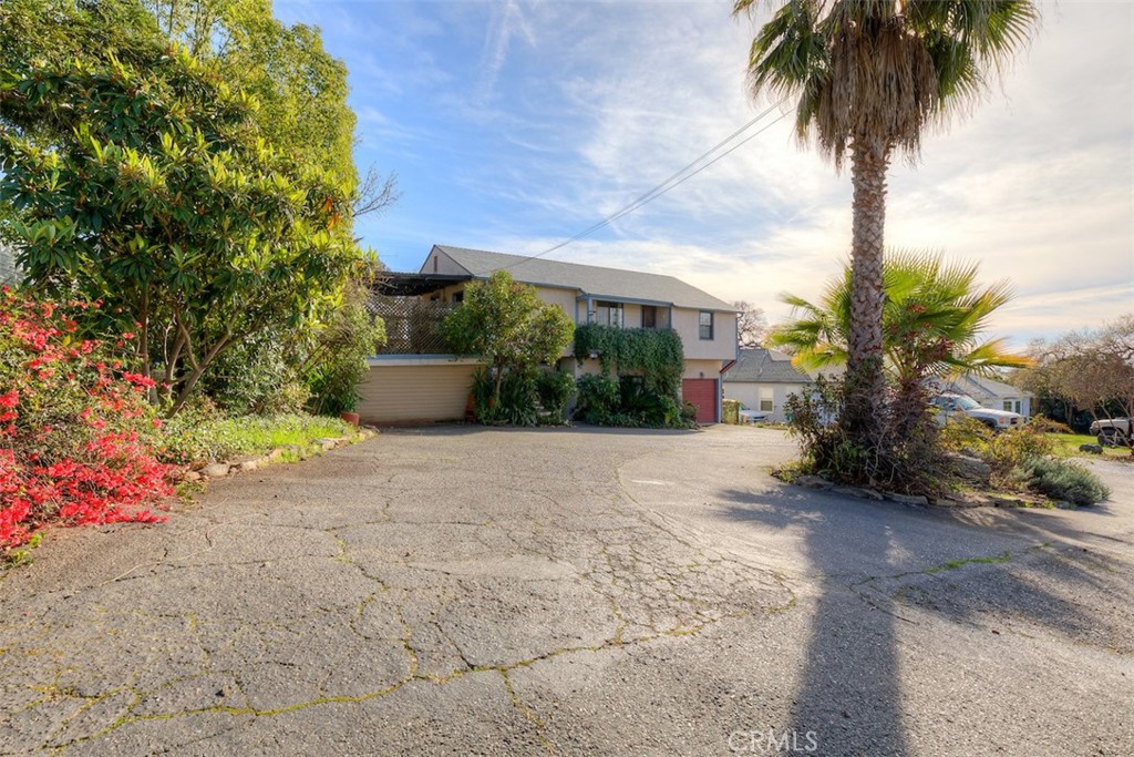 Wow~ CITY LIMITS! Unique property! Birdbath & brick entry greet you into this 2 level home. Find tiled flooring downstairs. 1 bedroom & 3/4 bath with tiled shower surround, on left of entry, thru the leaded glass featured door on right, find the large family room. Has a corner “bar” area, & a gas fireplace, relax & enjoy! Off that room, large storage closet. Go up the center staircase & upstairs find beautiful hardwood floors, lots of light from upgraded windows, gracing the living room, with a balcony out front. Spacious master bedroom, has hardwood floors, more light! The 3/4 bath has marble floors, updated features, with beautiful tiled step in shower. Kitchen has so much character! Lots of cabinets, built-ins, window seat, dining area, gas stove with tiled surround, dishwasher, refrigerator, window over sink! Just past the kitchen, find the laundry area, more storage, leading out to back porch & large deck! From the porch, enjoy views & access the backyard wonderland! Garden areas, outbuildings, storage, & chicken coop! New roof approx. 2 years ago! Truly a special property! Shown by appt only. Call your favorite REALTOR/Agent to set appt to see TODAY!