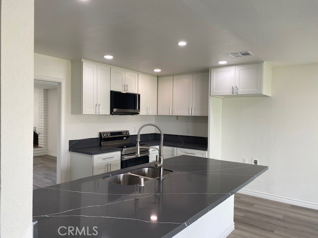 Welcome to 24621 Dardania, a beautifully remodeled single-story home situated on a desirable corner lot. This exceptional residence showcases extensive upgrades throughout, including brand-new luxury vinyl flooring, new windows with stylish coverings, fresh interior paint, and new doors with modern hardware. The fully remodeled kitchen features new cabinetry, elegant quartz countertops, stainless steel appliances, and updated fixtures—perfect for both everyday living and entertaining. Both bathrooms have been thoughtfully redesigned with top-of-the-line finishes. Additional highlights include new LED lighting throughout, a spacious living room with a cozy fireplace, and a formal dining room complete with a wet bar. The large corner lot offers ample outdoor space, making this truly a beautiful place to call home.