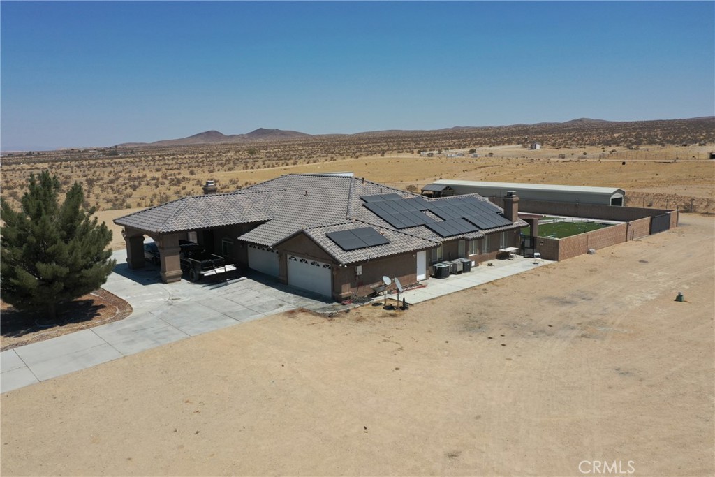 Private Gated Oro Grande Estate with Mojave River Views & Exceptional Style! This extraordinary custom residence sits on over 2 private acres and offers luxury, privacy, and breathtaking Mojave River views. Enter through the gate leading to a 4-car garage and step inside through stunning ornate iron doors to discover a home designed for both elegance and entertaining. The spacious 5-bedroom, 5-bath floor plan features a chef’s kitchen complete with a large center island, wrap-around breakfast bar, and top-quality finishes. Enjoy formal living and dining areas, as well as a large open family room with a custom built-in entertainment center. A beautiful see-through fireplace enhances the inviting ambiance across the main living spaces. A highlight of the home is the impressive bonus/game room, approximately 700 sq. ft., featuring a custom quartz wet bar, shiplap accents, and access to the backyard—perfect for gatherings and fun. The primary suite is a luxurious retreat offering a raised-hearth fireplace, walk-in wardrobe room, and private backyard access secured with exterior blind shutters. The adjoining spa-style bath boasts a soaking tub, dual vanities, and a custom tile shower with three showerheads. Four additional oversized bedrooms include a junior ensuite—ideal for guests or multi-generational living. Each bedroom enjoys its own bath access, offering a thoughtful split-floor plan for ultimate privacy. Step outside to a resort-style backyard showcasing a stunning pool and spa with cascading waterfalls, fire bowls, and a fully equipped outdoor kitchen and bar. Additional amenities include a pool bath with heating and A/C, custom tile shower, and outdoor shower, all enclosed for privacy. The property also features a 70’ x 14’ steel building with two roll-up doors, RV hookups and clean-out, a private well, covered dog runs, and ample space for horses or recreational use. With designer finishes, generous living areas, and incredible outdoor amenities, this estate is the perfect blend of sophistication and comfort. Schedule your private tour today!