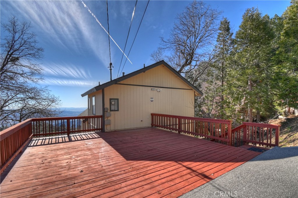Welcome to your private mountain retreat! This stunning three-level home offers breathtaking panoramic views of sparkling city lights, majestic mountains, and lush forest canopy from multiple vantage points throughout the property. The main level welcomes you with an inviting living room anchored by a striking river rock fireplace, creating the perfect ambiance for relaxation. The well-appointed kitchen features a convenient breakfast bar and dining area, ideal for both casual meals and entertaining guests. Step through to the upper back deck and prepare to be captivated by the sweeping vistas that stretch before you. This level also includes a comfortable bedroom and full bathroom, offering convenient single-level living if desired. Ascend to the top level where the luxurious primary suite awaits. This serene retreat features its own cozy rock fireplace for intimate evenings and spectacular views to wake up to each morning. The spa-like primary bathroom is designed for indulgence, complete with dual sinks for busy mornings, a relaxing jetted tub for unwinding after a long day, and a separate walk-in shower. The lower level transforms into an entertainer’s dream with a dedicated game room that includes a pool table and electronic dart board, perfect for hosting friends and family. The private bar adds a sophisticated touch for gatherings, while the laundry closet provides practical convenience. Another bedroom and full bathroom on this level ensure comfortable accommodations for guests, and access to the lower back deck provides yet another spectacular setting to enjoy those unforgettable views. With easy, level parking and thoughtful design throughout, this exceptional property offers the perfect blend of mountain living and modern comfort. Every level of this home has been crafted to maximize the stunning natural surroundings while providing the amenities and space for comfortable everyday living and memorable entertaining. This is a great, short drive location to Running Springs town, Hwy 330 for commuters, Snow Valley Ski Resort, Green Valley Lake, Sky Park At Santa’s Village, etc.!