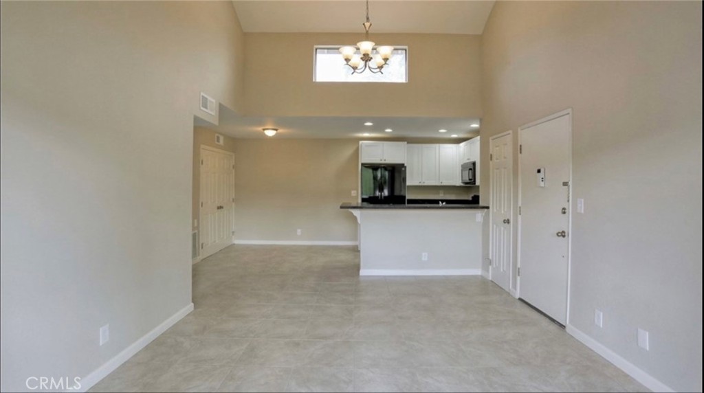 Modern upper-level 2-bedroom, 2-bath condo located in a desirable 150-unit community. This bright unit features a large open floor plan with a spacious living room that opens to a private balcony. Upgrades include new windows and blinds, a remodeled kitchen with quartz countertops, stainless steel appliances, and LED recessed lighting throughout. The primary bedroom is generously sized and includes a walk-in closet. Both bathrooms feature newer vanities and fixtures. The second bedroom offers great size and flexibility for guests, an office, or additional living space. The unit includes two assigned covered parking spaces. The association offers a pool, tennis court, community social room, and coin-operated laundry facilities. Conveniently located near Peachland Elementary, shopping, dining, parks and major freeways. Tenant pays for electricity, cable and internet.