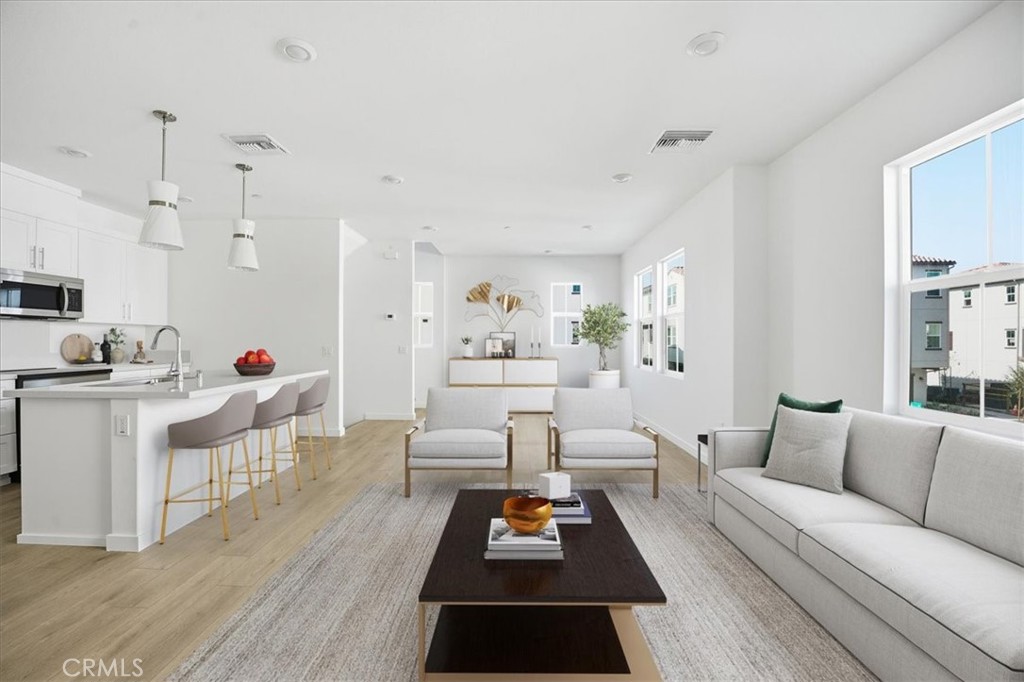 NEW CONSTRUCTION MOVE-IN READY! This stylish 3-story end-unit townhouse offers modern finishes and comfortable family living. The spacious, inviting ground-level entry includes a convenient coat closet. The second floor features an open-concept layout with a contemporary kitchen complete with a center island, sink, dishwasher, and bar seating, all opening to the great room—perfect for entertaining and family gatherings. A powder room with modern finishes adds convenience for guests. Upstairs on the third floor, you’ll find a secondary bedroom with a full bathroom, a side-by-side laundry closet, and a private primary suite enhanced by built-in cabinetry and a modern, spa-like ensuite bath with linen storage. Located within a beautifully appointed gated community featuring desirable neighborhood amenities including a sparkling pool and clubhouse. Enjoy modern comfort, convenience, and turnkey living! PROFESSIONAL PICTURES HAVE BEEN VIRTUALLY STAGED