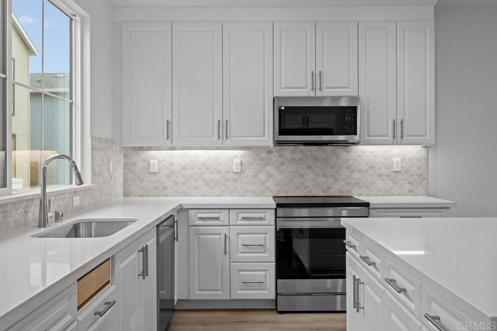 Beautiful new community in highly desirable area! Beautiful community amenities include parks, off the lease dog area, pool, in ground spa, barbeque area, bocce ball courts, cornhole areas, scenic outdoor area. Wonderful, clean new community, just four miles from the Carlsbad Coast. The community is also a very short distance from Legoland and easy drive to the fun and vibrant Carlsbad Village area. The home is still open to your personalization, with flooring & countertop options still currently available. The unit offers an enclosed front patio area, with patio sliding door great for indoor outdoor living. Living level offers 9 ft ceilings, open kitchen with island, white thermofoil cabinets, quartz counters, stainless name brand appliances, and walk in panty/ laundry room. Open concept plan offers plenty of space. Three bedrooms up on third level, with two full bathrooms. Attached two car side by side garage. Lighting in all bedrooms included, as well as Ring Doorbell system, Energy Star certified construction with solar 2.8kw system included as an owned feature. Builder warranty backed by one of the nation’s largest home builders. In house financing is available. Highly rated Carlsbad schools and just minutes from the beach. Easy access to beautiful Carlsbad Village. Why deal with the expense and hassle of rehabbing a used out of date home? Rare opportunity to get new on the coast!