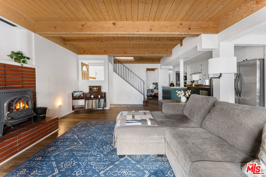 Nestled in a premier neighborhood on Sunset Drive, this thoughtfully renovated mountain retreat is notable for blending rustic with contemporary features. The home greets you with an open-concept design that maximizes natural light, creating a bright and airy atmosphere that is immediately welcoming. The main living area is defined by striking custom walnut-blasted ceilings and new flooring that flows seamlessly throughout. Whether you are gathering around the cozy stove fireplace or hosting in the renovated kitchen – fully equipped with new appliances and artisanal wood countertops – the space feels both intimate and expansive. The adjacent dining room offers a generous footprint, making it the perfect setting for hosting memorable dinners with family and friends. The home’s versatility extends to its sleeping quarters and lower level, where comfort meets potential. Each of the three bedrooms are designed for privacy and rest, while the renovated bathrooms feature simple contemporary finishes. The expansive, built-out basement is a true highlight, featuring a second fireplace and a continuation of the walnut-blasted beamed ceilings. This level includes a full bathroom and offers the flexibility to serve as a grand fourth bedroom, a high-end media room, or a premier recreation hub. All new windows have been recently installed throughout the home. In addition, there is a generator hookup. Outside, the property invites you to embrace the mountain lifestyle from the inviting deck or the quiet yard, both offering a serene vantage point for the surrounding landscape. Practicality is also a priority, with ample parking and storage space, which makes this a seamless transition for homeowners or a turnkey opportunity for investors. Perhaps one of the property’s greatest assets is its proximity to local culture; you are within close distance of a beloved community coffee shop and restaurant, and just a short drive from boutique shopping, gourmet markets, farmer’s markets, and world-class hiking trails. With Lake Arrowhead just 15 minutes away, this stunning cabin represents a rare and move-in-ready investment in one of the region’s most sought-after locations.