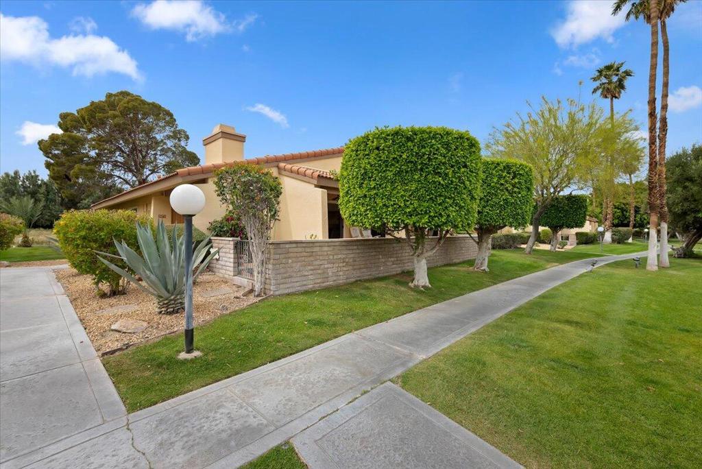 Surround yourself in a Villa-like setting in a highly-desirable 3BD 2BA condo at securely gated Palm Springs Country Club. This one-of-a-kind unit is within the community designed by famous architect William F. Cody when Palm Springs Country Club was home to the Rat Pack golfers. It is one of the largest in the community at nearly 1700 square feet. Four extra large patio doors to the extended front and back decks let in maximum light, but plantation shutters keep the summer heat at bay. Vaulted Ceilings, skylights, and only one shared sound-proofed wall make this this home luxurious. Step out the patio doors from either of the 2 primary bedrooms to the back deck to view Mount San Jacinto. The blue lights at the top of the Tram are visible at night while having cocktails in the back. The greenbelt immediately behind the deck is popular with joggers and dog walkers.The bright skylight in the extra large remodeled kitchen makes cooking a dream.The master bathroom walk-in shower was remodeled and extended with built-in seating. It is large enough to accommodate special needs.Relax in either of 2 spas or the sparkling seasonal pool in close walking distance.This has been a successful seasonal rental for the current owners, and also an enjoyable second home.