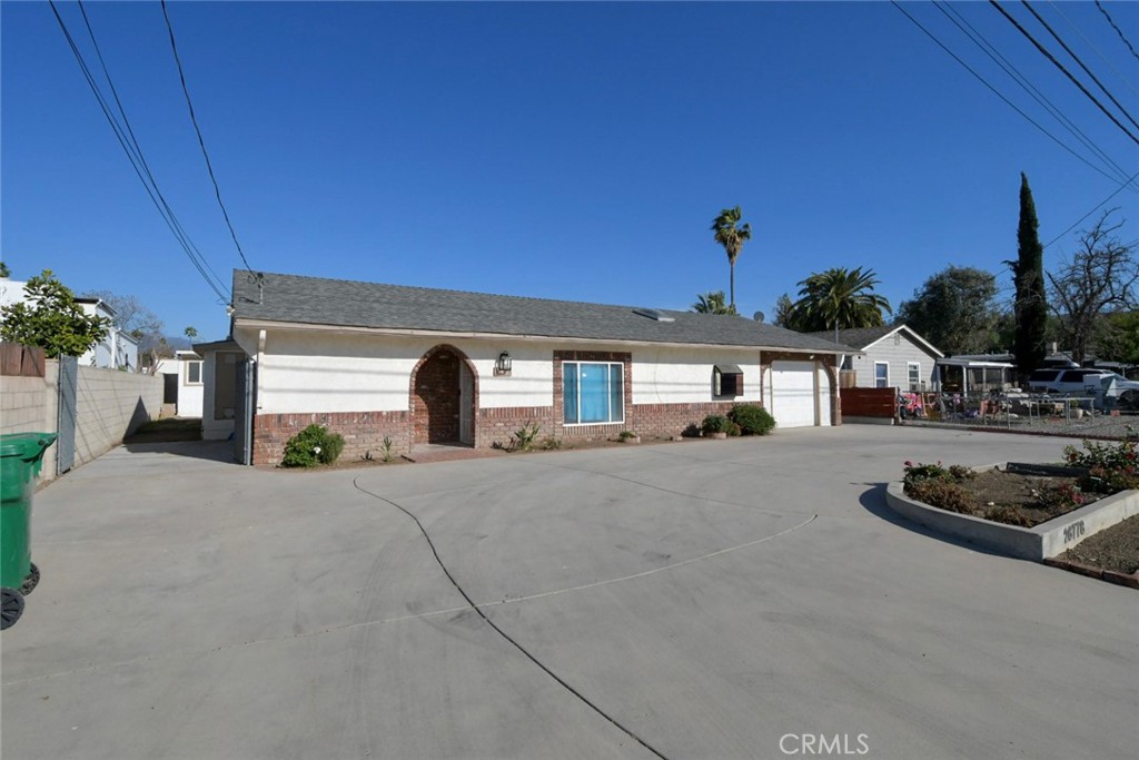 Charming home with lots of potential! 3 bedrooms along with an extra room that could be used as a 4th bedroom, office, craft room, the possibilities are endless. Two bathrooms. Sizable family/living room with wood beamed ceilings that flows into the open kitchen featuring upgraded quartz countertops, black sink, and garden window. Primary suite offers French doors to the backyard and a standout custom bath with sunken tub. One-car garage. Spacious backyard with a large storage building. Cute curb appeal with circular drive and brick accent. Come see this home today!