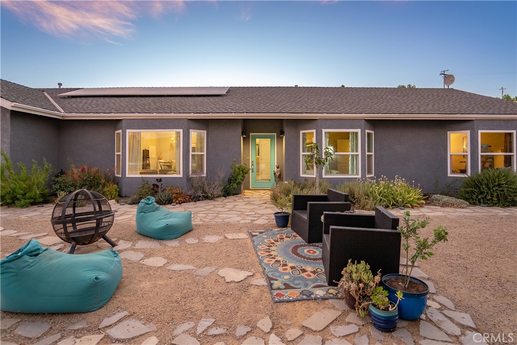 Set in the rolling hills of Independence Ranch, this private San Miguel estate captures expansive panoramic valley views across approximately 10 acres of serene Central Coast countryside This 3-bedroom, 2-bath home spans roughly 1,685 square feet of thoughtfully designed living space. The living room is bright and inviting, anchored by a graceful bay window framing the surrounding landscape. The updated kitchen combines style and function with quartz countertops, stainless steel appliances, and a walk-in pantry; ideal for everyday meals or entertaining. The primary suite is a tranquil retreat, featuring dual closets and sliding glass doors with private access to the yard. The en suite bath is luxuriously appointed with dual sinks, an oversized mirrored wall cabinet, and a beautifully tiled step-in shower. Two additional bedrooms, provide light-filled, versatile spaces for family, guests, or work-from-home needs. Outdoor living is exceptional, with a spacious patio shaded by a canvas cover, perfect for alfresco dining or enjoying sunsets over the valley. The grounds include fruit trees, a bocce ball court, and generous open space to explore or create your own vision. Owned solar adds efficiency, and the location offers easy access to renowned Paso Robles–area wineries, combining privacy, scenic beauty, and the best of Central Coast lifestyle.