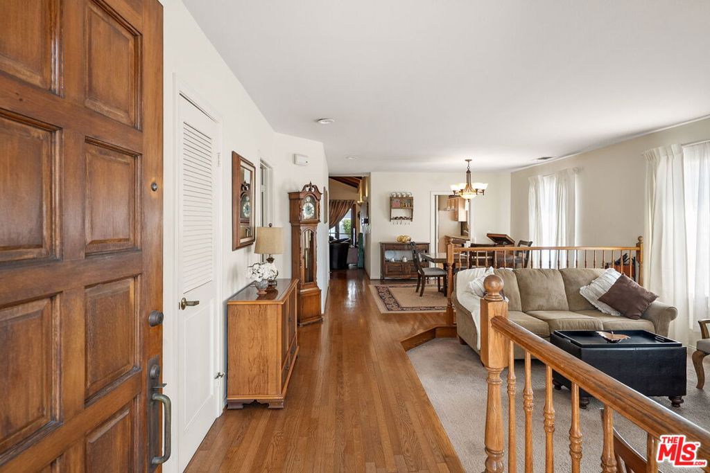 A charming West LA traditional gem nestled in the sought-after Clover Elementary School district. This 3-bedroom, 2-bathroom home greets you with a bright and airy living room, where sunlight pours through abundant windows and flows seamlessly into the dining area. Hardwood floors enhance the warmth and character of the living and dining areas, leading into a fully equipped kitchen with generous cabinetry and a breakfast nook framed by a beautiful bay window. A versatile bonus den features vaulted ceilings with exposed wood beams, a brick fireplace, and a wet bar – ideal for entertaining or relaxing evenings at home. The spacious primary suite offers a serene retreat with direct access to the backyard and a recently remodeled en-suite bathroom showcasing a dual sink vanity, a soaker tub, and a glass shower. Additional highlights include generous guest rooms, a dedicated laundry room, and an attached 2-car garage. Enjoy Southern California living at its best in the private backyard featuring a pergola-covered patio along with a generous grassy lawn.