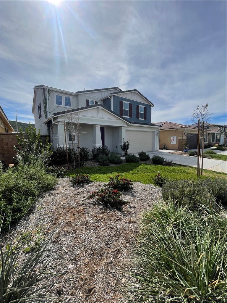 Nearly new, energy-smart, and built to impress—this 5-bedroom, 3.5-bath modern home in Menifee is everything you’ve been waiting for. Featuring a convenient downstairs bedroom, solar panels, and an EV charger, this highly upgraded home blends cutting-edge efficiency with effortless style from the moment you step inside. The open-concept design showcases a stunning kitchen with new appliances, flowing seamlessly into the dining and living areas and out to a grand backyard patio through dramatic double sliding doors. Upstairs offers a spacious loft ideal for movie nights or entertaining, a luxurious primary suite with ample storage, and generously sized secondary bedrooms. Set in a vibrant community with parks, trails, sports courts, and quick access to major freeways, shopping, and dining—this home is ready to welcome you and everything that comes next!