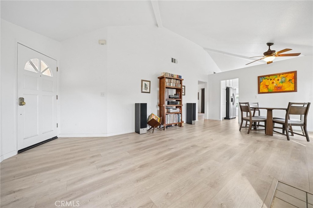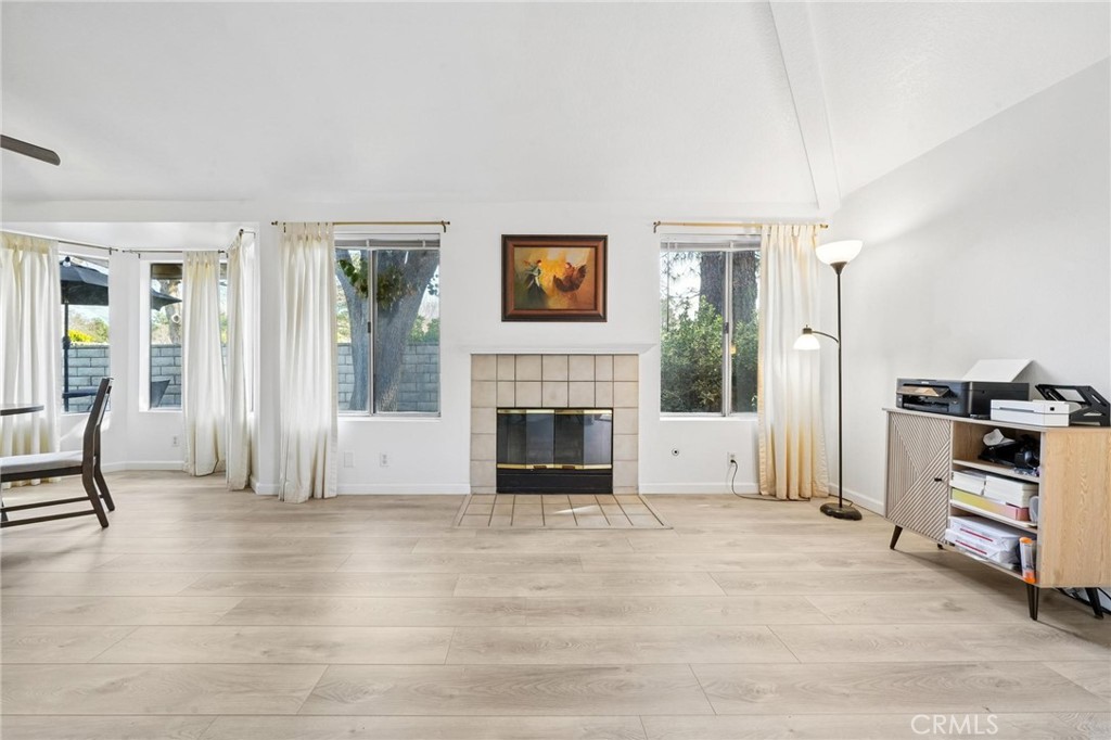 Gorgeous Mountainview Courtyard SINGLE STORY that sides the greenbelt and backs the park. What a location! What views! Move right in with brand new plank style flooring, newer paint, HVAC (heater & air) and the wrap around yard has both a patio and side area with turf, covered by a nice tree. Simply a tremendous location in this popular development. The complex has recently had the exteriors painted and the roofs redone and it shows beautifully with a reasonable HOA and no Mello Roos taxes. There are 3 community pools, two playgrounds and of course Mountainview Park is right behind you. 2-car garage with storage and ample guest parking in front. Great home!