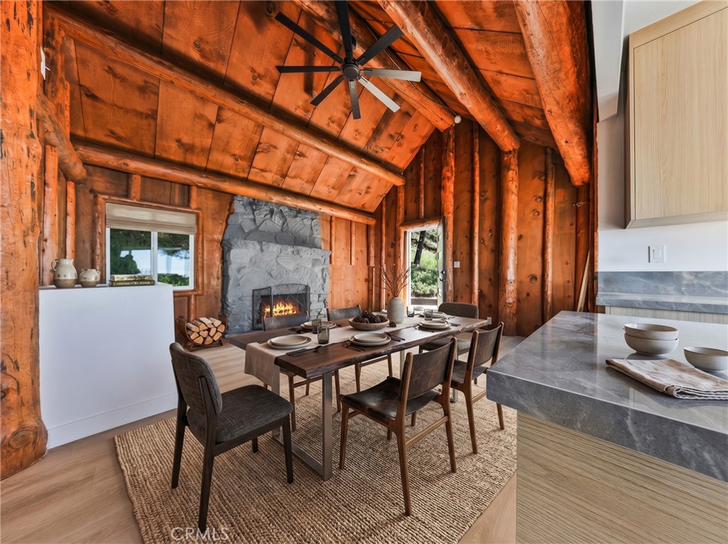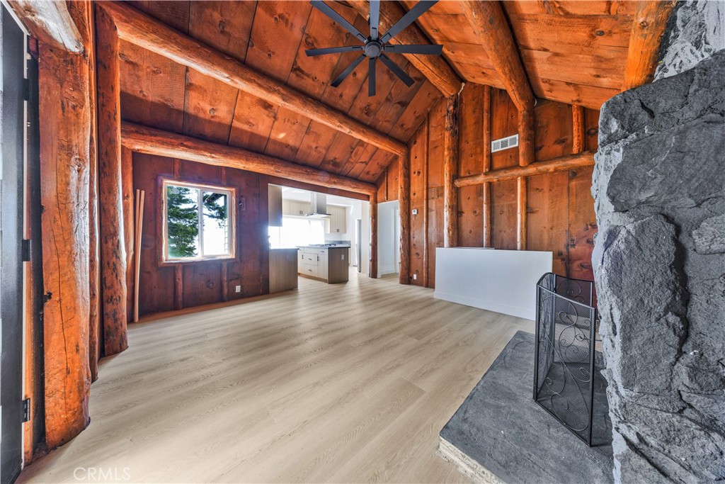 This is your chance to own one of the few homes south of Highway 18 in the highly desireable unincorporated area of Skyforest. Dramatic day views from inside the home, on both upper and lower decks as well as from the driveway and 10,200 sq. ft. grounds. Also, enjoy terrific City light views! This wonderful home has had a major remodel which includes new kitchen with new European self closing cabinets, new counters, new diswasher, new LG refridgerator and much much more. Both bathrooms have all new fixtures and tasteful finishes. New Roof and tankless water heater. So much more welcomes you here. The owner says that deer are regularly seen in the early hours of the day and the home opens to the BLM wilderness valley below. The owner also states that the parcel is zoned as a mixed use with the potential for a commercial establishment on Highway 18. (Please verify this potential) Aproximately 894 sq. ft. on the main level and aproximately 306 sq. ft. on the finished lower level. This home also has an office included on the lower level. Located within walking distance to the well known LouEddies Pizza resturant and with immediate access to Highway 18 for quick trips down the mountain. (furnature in the pictues and video are virtual/AI.)