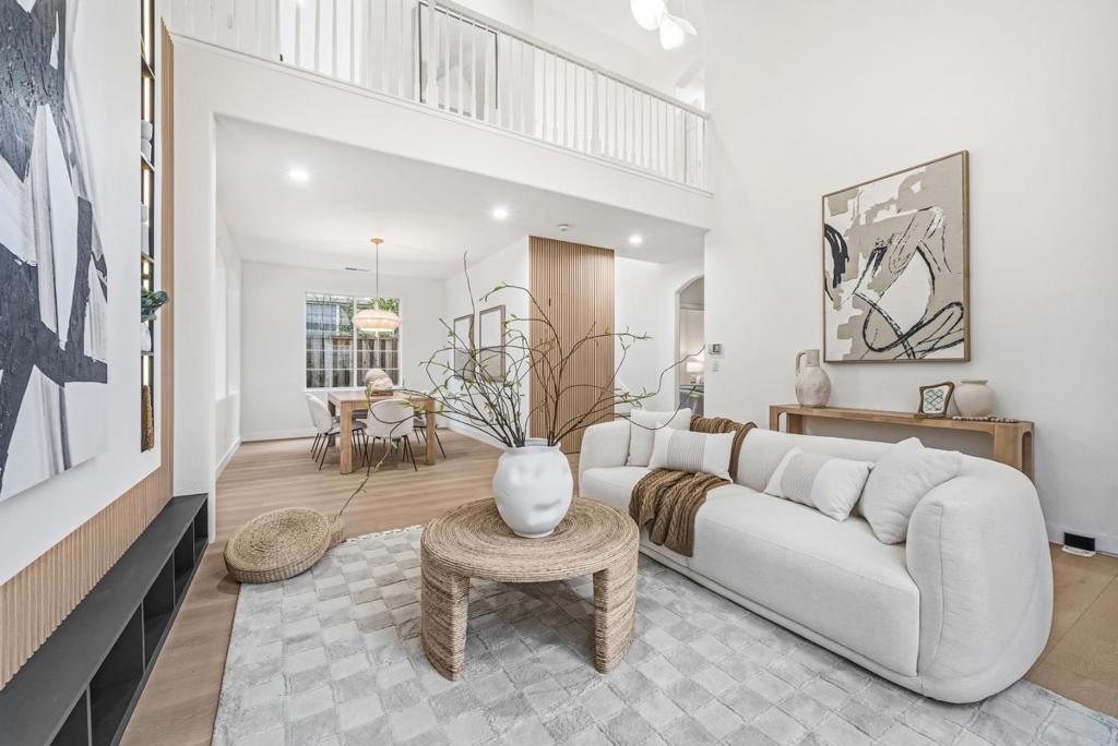 Nestled in one of San Joses most desirable locations, minutes from Santana Row, Valley Fair, and premier tech hubs, this two-story residence has been meticulously reimagined into a contemporary sanctuary. Seamlessly blending architectural interest with high-end finishes. this home is the ultimate turn key opportunity in the heart of Silicon Valley. The interior boasts a bright open flow defined by soaring vaulted ceilings and abundance of natural light. The main living area features a stunning custom media wall with white oak slat paneling and integrated shelving, while the secondary family room offers a cozy retreat with sleek fireplace and designer arched niches. New wide-plank flooring throughout and curated collection of designer light fixtures. A fully renovated kitchen featuring waterfall countertops, elegant white shaker cabinetry, and high end SS appliances. All bathrooms are completely new and modern, designer tile work, contemporary vanities, and premium fixtures. Downstairs bedroom and full bath provide the perfect setup for guests or multi-generational living. Plus two-car garage, central heating and AC. Cozy, low-maintenance backyard for outdoor lounging. Enjoy effortless commutes to Apple, Nvidia, Cisco etc. with world-class shopping and dining just moments away.