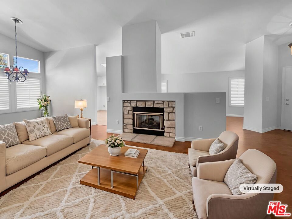 Sunlit, single-level living on a spacious corner lot in the desirable community of Palmdale. This 3 bedroom, 2 bath ranch feels fresh and inviting with new interior paint, updated flooring, and neutral finishes that let your style take the lead. Vaulted ceilings and an open floor plan create airy, connected spaces, while a striking double-sided fireplace warms both gathering areas for cozy evenings in. The kitchen blends function and flair with granite counters and stainless appliances, and it opens directly to an expansive patio making it perfect for effortless indoor-outdoor living, from slow morning coffees to sunset dinners under the sky. A fenced yard adds privacy and room to unwind. Practical perks round it out: a 3-car garage for cars, gear, and weekend projects, plus single-level convenience that makes daily routines easy. Warm, welcoming, and move-in ready, this Palmdale ranch is designed for relaxed days and easy entertaining. Included 100-Day Home Warranty with buyer activation