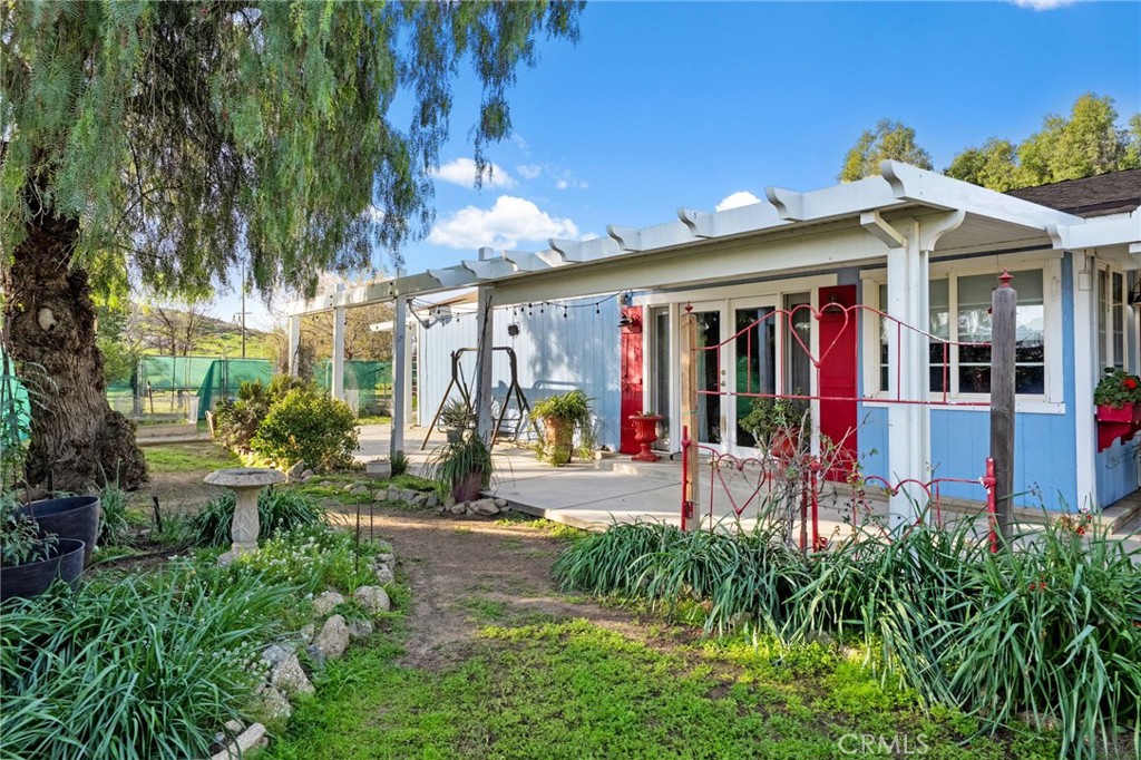 Great opportunity! Over 5.37 acres of usable land! Zoned A-!-5 for light agriculture gives you many choices for using the land. Views all around. Home is on a 433A foundation! The home has 4 bedrooms, 2 bathrooms including a mudroom with access to backyard.. Large living room with vaulted ceiling has access to side patio through the French doors with side panels that open for fresh air. Laminate flooring through the main living areas. Kitchen offers lots of counter space with quartz counters, microwave, dishwasher and stove and glass door pantry. Roll out shelves great for baskets! Large farmhouse style double sided sink with picturesque window looking out the back. Bring your barstools to eat at the island or at the large dining room. The primary bedroom is located at one of the home away from the other three bedrooms. Vaulted ceilings and three semi-walk-in closets. The primary bathroom has a new vanity with dual sinks, quartz counter, new fixtures and lighting and Luxury Plank Vinyl Flooring. Substantial deep patios were added with Allumawood patio covers. The patios are deep and concrete slabs. The front door patio is wide and long. A separate Garage/Workshop is big with cement slab floor, high ceiling and has two metal roll-up doors with plenty of room for all those play toys. It’s being used as a workshop. The home itself is fully fenced in. According to Riverside County Office, you can add and ADU and additional dwelling attached to the home however, please verify for yourself with Riverside County. Land has a gentle slope to the back of the property. Septic and Well certs are already done. This is your chance to own land before it’s all gone. Close to Holland Rd., Scott Rd., Liberty High School and easy access to freeway and amenities.
