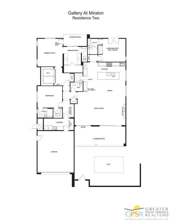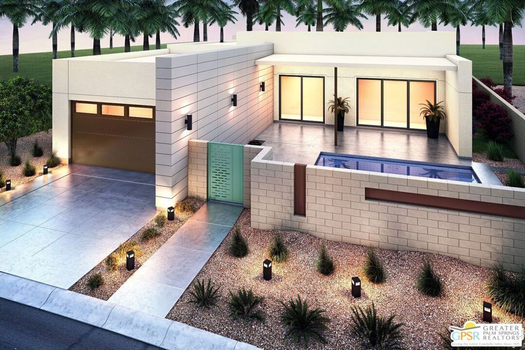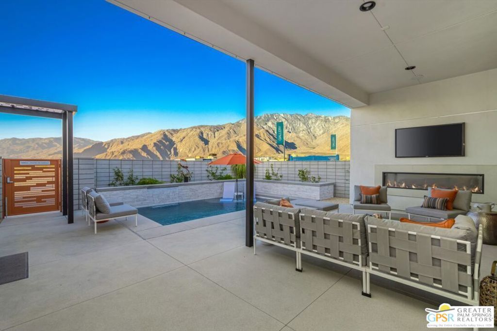 LAST FLOOR PLAN AVAILABLE: New Construction Ready 7/15/25. One of our most popular residences, the “BELDI” offers an open floor plan concept with 10- and 12-foot ceilings throughout, 3 spacious bedrooms with en-suite, a large private courtyard with a 10×18 swimming pool, landscaping, and solar package. The ” BELDI” is located in Miralon one of Palm Springs Premiere Communities that offers Modern Architecture Designs with amenities that include a 10 million Club house with Yoga Studio, Fitness Center, Wi-Fi Cafe, Bar, meeting rooms, prep kitchen, dog park, 7 miles of walking trails and 7000 Olive trees. Solar System is leased but the builder pre-pays the lease for 25 years. NOTE: Pics shown in the listing are of Gallery’s Model 2 and not of the actual home on lot 196. Home should be completed