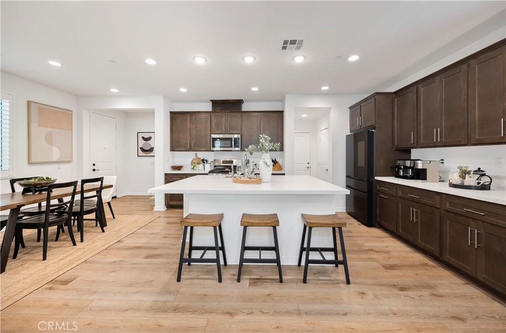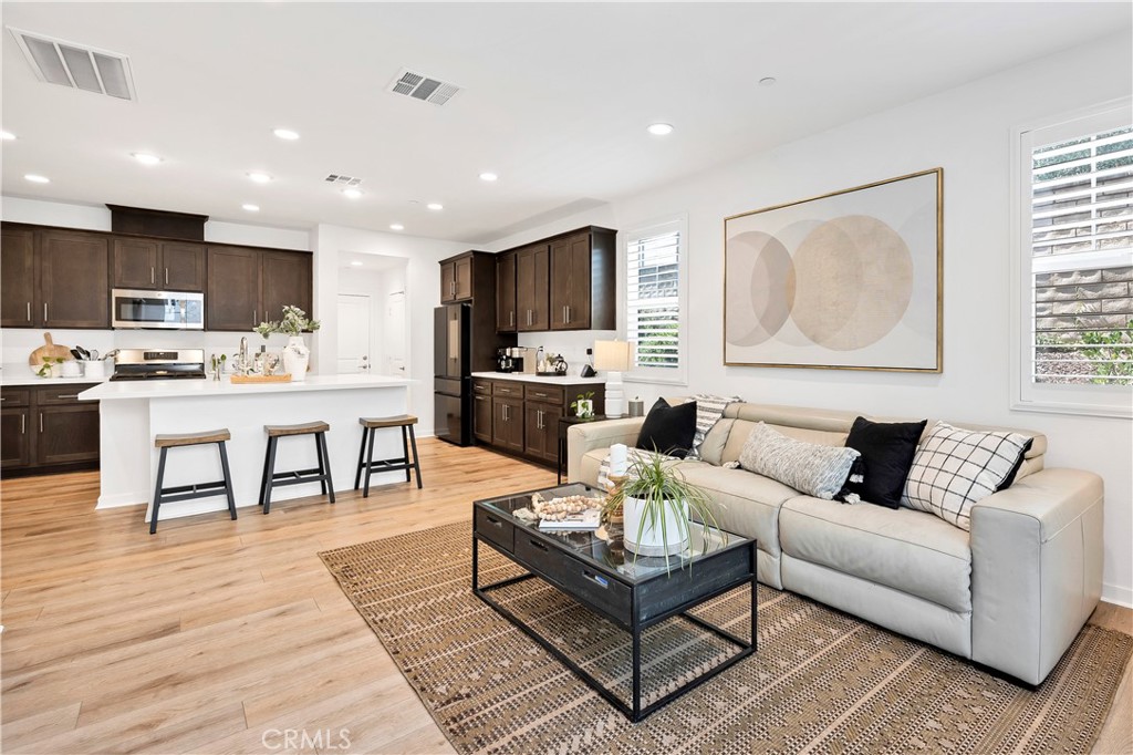 Rare Find! Near-New 4 Bed, 3 Bath with Paid Solar in Temecula’s Sommers Bend — All Under $700K! Welcome to Revel at Sommers Bend, where modern living meets resort-style amenities. This beautifully upgraded 4-bedroom, 3-bathroom home offers a rare opportunity to own a near-new residence with fully paid solar—all for under $700K. Step inside to discover a thoughtfully designed floor plan with luxury vinyl plank flooring downstairs, plush carpet upstairs, and timeless finishes like plantation shutters and recessed lighting. The gourmet kitchen features white quartz countertops, rich cabinetry, stainless steel appliances, and stylish upgrades, opening seamlessly to the living and dining areas. An automatic slider shade enhances both convenience and design. The main floor includes a full bedroom and bathroom, perfect for guests or multigenerational living, while the upstairs offers a tech center, laundry room, and spacious primary suite with a walk-in closet and spa-inspired bath. Two additional bedrooms share a dual-sink bathroom, making the home as functional as it is beautiful. Outside, the backyard is built for entertaining with low-maintenance turf, pavers, a built-in BBQ island, and a cozy firepit. The attached 2-car garage with side-yard access door adds everyday convenience. Living here means enjoying Sommers Bend’s incredible amenities: resort-style pools, fitness center, clubhouse, 21-acre park with sports fields, playgrounds, fire pits, BBQ areas, and scenic trails—plus a calendar full of community events. This is more than a home; it’s a lifestyle. Opportunities like this—4 bedrooms, 3 baths, paid solar, under $700K in Temecula’s premier master plan—don’t come often. Schedule your showing today!