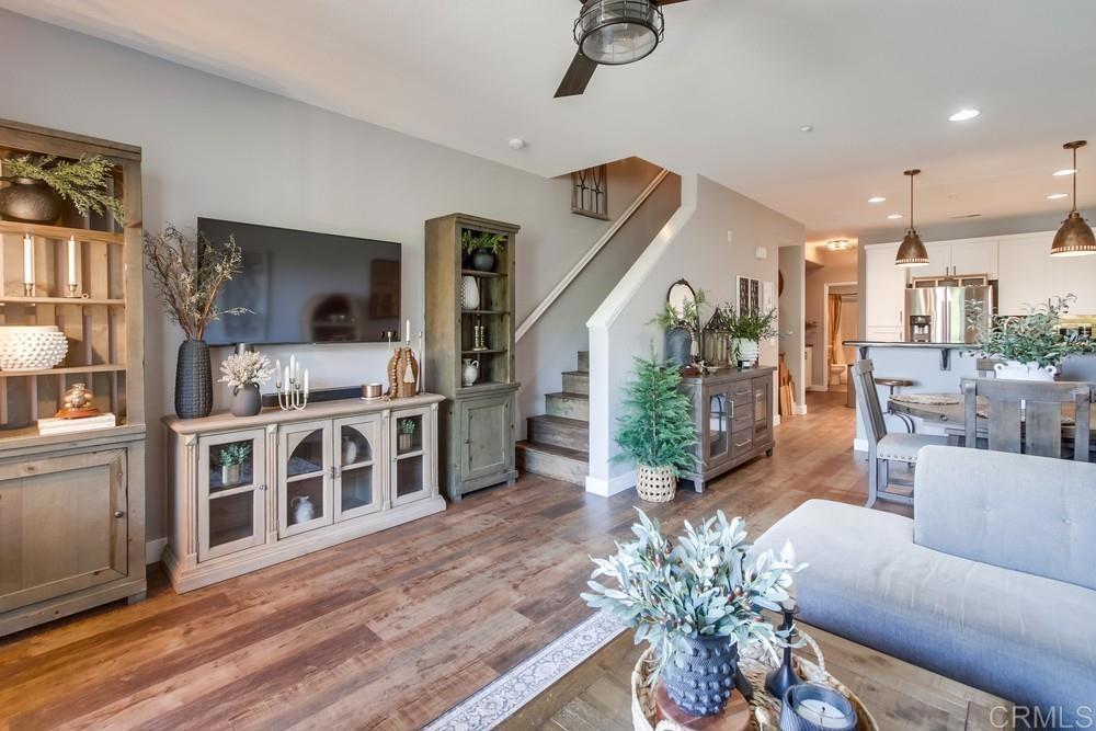 Welcome to your dream home in the beautiful Treviso townhomes in Santee. Upon entry you will find a laundry room that contains a full size washer and dryer, that also leads to the garage for easy private access. As you proceed to the main living area you are greeted with a spacious living room and dining room with a private balcony for relaxing and enjoying the best views of Mission Trials Park. The open floor plan flows into the kitchen that has been upgraded with new cabinets, stainless steel appliances and new lighting. This level of the home also has a nice size bedroom great for guests or an office, a full bathroom with newer quartz countertops, lighting and custom mirrors. As you go up to the top level you are met with a serene master bedroom with his and hers walk-in closets, updated ensuite bathroom and great views, in addition to a 3rd bedroom with its own bathroom. This development comes with exceptional amenities to include a large sparkling swimming pool, jacuzzi and clubhouse. Located in this desirable neighborhood, this home is perfect for those who appreciate modern updates and stylish living spaces. Don’t miss out on this opportunity to make this stunning property yours!
