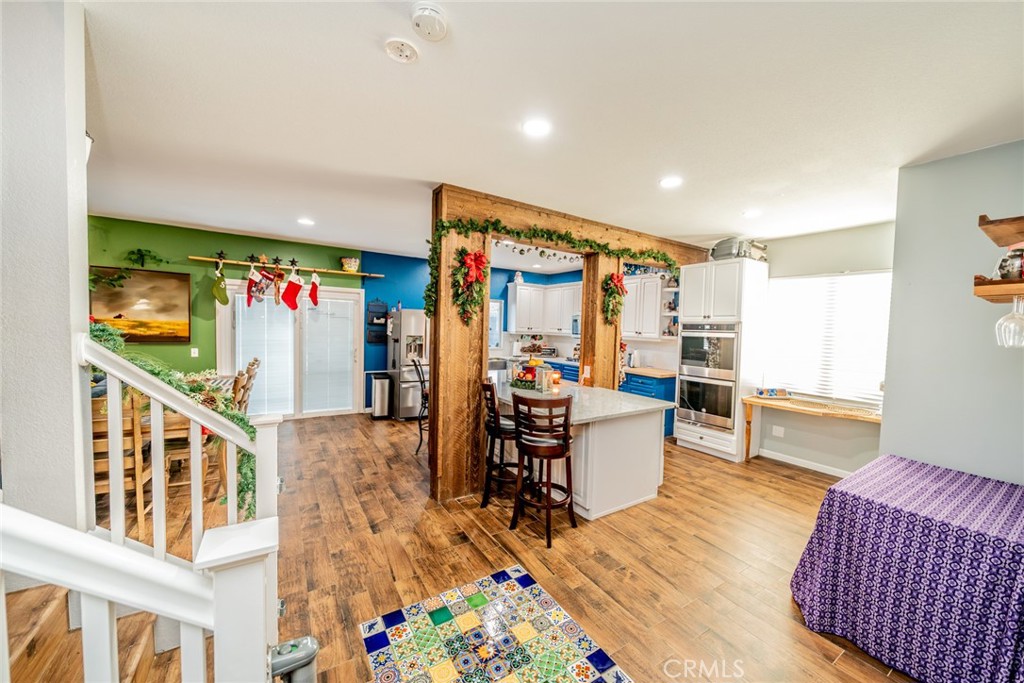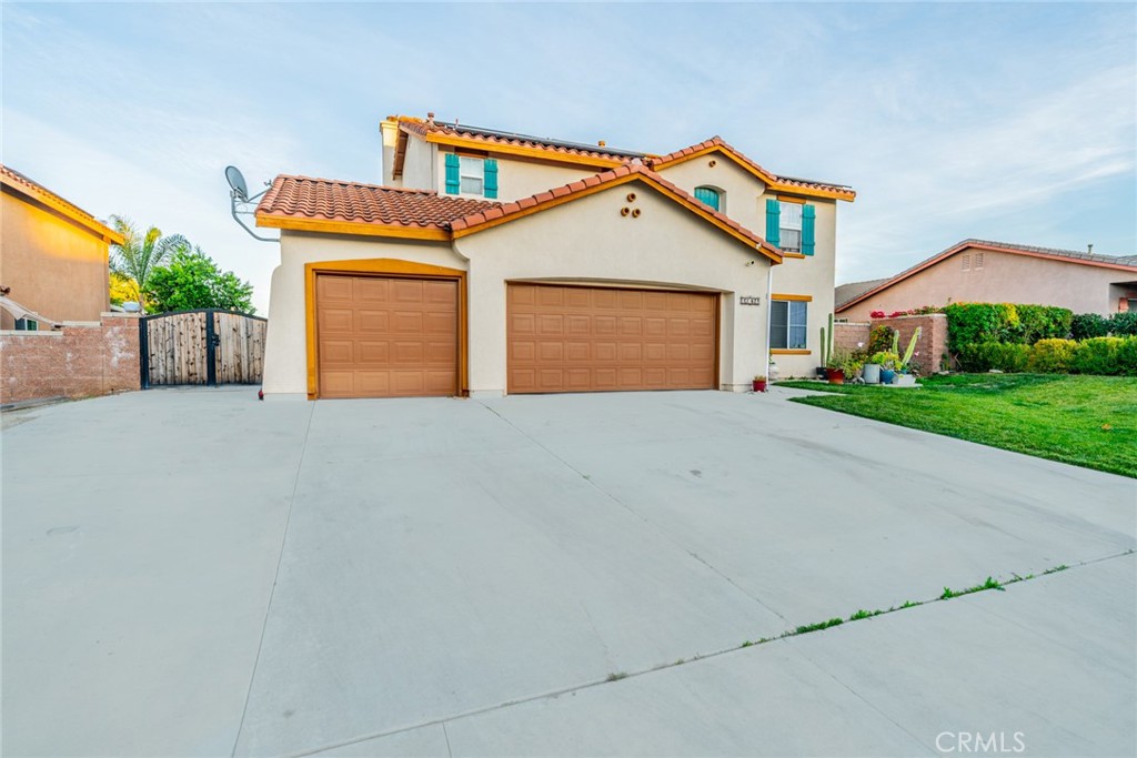 Beautiful home nestled in Menifee bordering Murrieta. This beautiful 4 bedroom, 3 full bath home with open floor plan features a gorgeous entry way, newer tile flooring that leads you to the beautiful large kitchen with an oversized island with marble countertops, wooden columns, built in microwave, stainless steel farmhouse sink, double oven and a built in wine cooler. Open to the dining area and large family room with beautiful fireplace. Downstairs you also have a room that can be used as an office or optional downstairs bedroom (currently being used as a bedroom). The downstairs bathroom is handicap accessible. Walk up the stairs, where you will find a nice open loft area, 3 guest bedrooms, a full guest bathroom, individual laundry room and a spacious Ensuite Master bedroom. The beautiful Master features separate shower, tub and toilet as well as a walk-in closet not to mention the beautiful views to the Valley and Temecula Wineries right from your master bedroom. The beautiful and spacious backyard perfect for entertaining features a nice pool and spa. You will also find Lemon and plum fruit trees, fire pit area, and a separately fenced dog and play areas for children. The front yard is low maintenance landscaping, not to mention the large 3-car garage with laundry hook-ups as well, oversized driveway for RV/TOY parking. This home is energy efficient with solar (23 panels). There is a community park, no HOA, easy access to the 215 freeway, close to stores, schools (Costco and Trader Joes just 10 minutes away), restaurants, entertainment and a short drive to famous Temecula Wine Country.