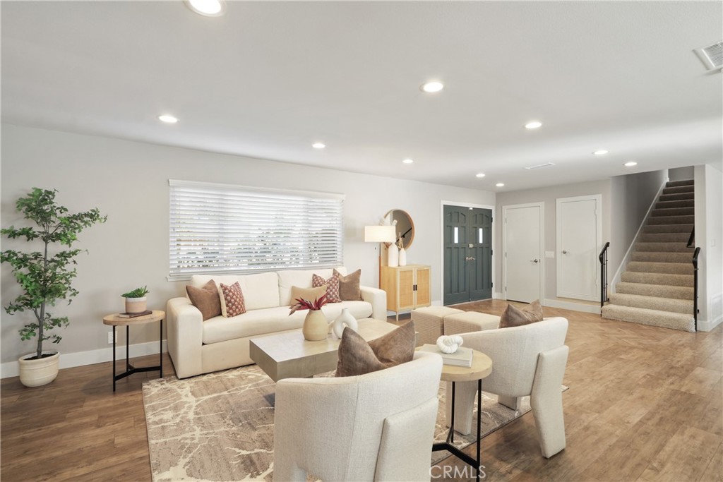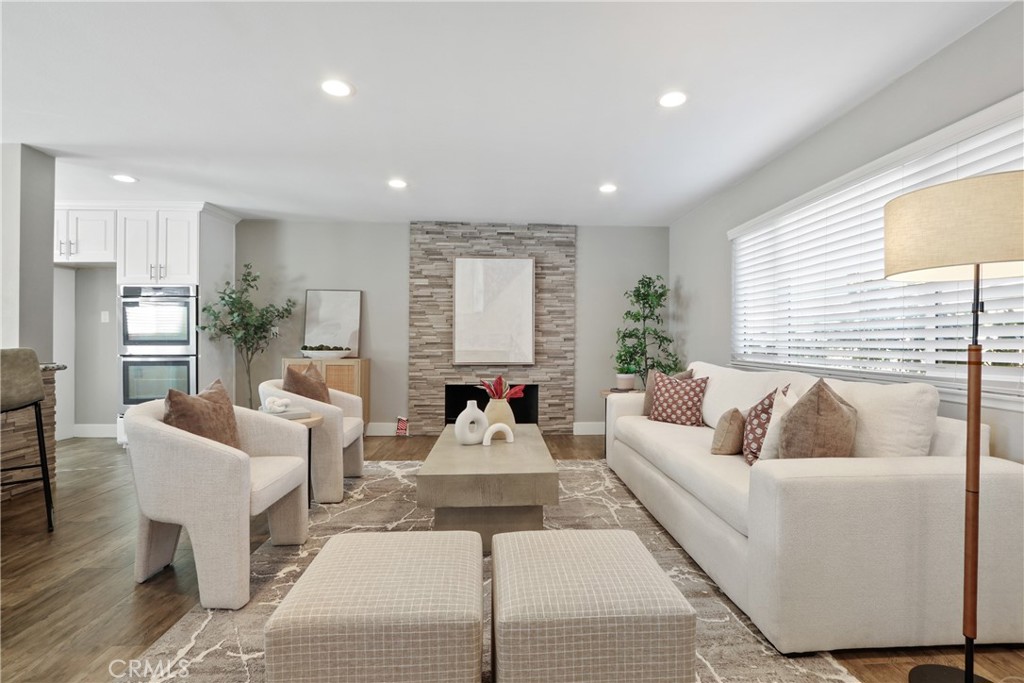 This beautiful 5-bedroom, 3-bath home offers a thoughtfully designed living space that has been completely remodeled throughout. Step through the double-door entry into an inviting open floor plan filled with natural light, where the living, dining, and kitchen areas all flow seamlessly together to create a warm and connected atmosphere. The showstopping 13-foot kitchen island is an impressive centerpiece featuring granite countertops and a stacked-stone accent finish—perfect for meal prep, hosting, or gathering. The updated kitchen offers soft-close cabinets and drawers, a built-in spice rack, pantry, granite countertops, stainless steel sink, and appliances which include a double oven, microwave, and gas cooktop. Custom wood-look tile flooring spans the entire main level. Double-pane windows enhance energy efficiency, while central A/C, heat and a whole house attic fan provide year-round comfort. The living room boasts a floor to ceiling custom stacked stone fireplace. Two spacious bedrooms are located on the main floor behind a private door, offering flexible living options for guests, workspace, or multi-use needs. The first-floor bathroom features a convenient walk-in shower. The laundry room includes a utility sink and plenty of storage. The entire interior has been freshly repainted for an updated and move-in-ready finish. Upstairs, brand-new carpet leads to three additional bedrooms, including a spacious primary suite with a walk-in closet and dual-sink vanity. Mirrored sliding closet doors are featured throughout. All bathrooms have been updated with beautiful mirrors, vanities, granite countertops, custom tile showers, and thoughtfully designed niches. At the top of the stairs you’ll find an additional closet and a large linen cabinet. The private backyard offers a peaceful retreat with two mature avocado trees providing shade and seasonal enjoyment—ideal for relaxing or entertaining. The property includes a detached 2-car garage, space to park two additional vehicles in front of the garage, and a 9.5-foot gate accommodating RV, boat, or trailer parking. Situated directly across from the scenic Santa Ana Riverbed biking trail—with access routes toward Newport and Huntington Beach as well as charming Old Town Orange. The home also provides easy access to the 91, 55, and 57 freeways, local schools including Fletcher Elementary (dual immersion program), Villa Park High School and Orange Lutheran High School are just minutes away.