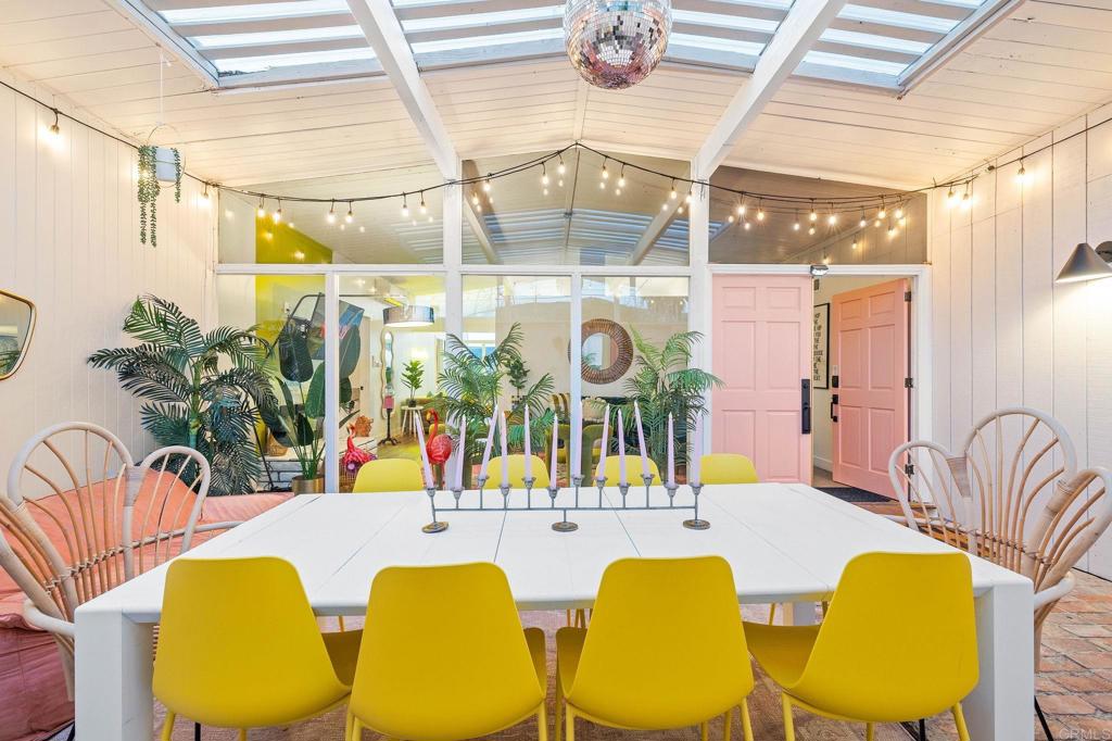 Stylishly renovated with a fresh and bold aesthetic unlike anything else on the market! This rarely available “Lido” model designed by renowned architect A. Quincy Jones is custom tailored for the most discerning mid-century modern enthusiast. The moment you walk in, the home’s unique personality and charm make it feel like a boutique beach getaway. The light-filled interior showcases colorful, modern design with an open-concept living area, a fun disco tiled fireplace, and large sliding glass doors that create seamless indoor-outdoor living. The upgraded kitchen features sleek cabinetry, stainless steel appliances, a whimsical pink fridge, and a central island ideal for entertaining. Fantastic layout with multiple lounging and dining areas including an enclosed atrium that makes the perfect spot to host dinner parties. The private backyard is designed for both relaxation and recreation, featuring a hot tub, fire pit, and large grassy play area. Additional features include split system AC and a brand new roof installed in 2026. Sold fully furnished and dialed-in, this is truly a “just bring your toothbrush” retreat—no projects, no guessing, just instant lifestyle. Every detail has been thoughtfully curated and is included with the sale – right down to the Pacman arcade game and boogie boards. Be part of Oceanside’s ongoing renaissance, fueled by the much anticipated Ocean Kamp development just blocks away and the flourishing downtown scene including The Seabird, Mission Pacific Hotel, and an ever-growing collection of trendy restaurants, cocktail bars, and local breweries. Located a quick 4 miles to the beach, this is the only 5 bedroom house under $1M in the coveted 92054 zip code. No HOA and no Mello Roos. This is the quintessential Southern California home offering a turnkey coastal lifestyle for buyers looking for something truly out of the ordinary.