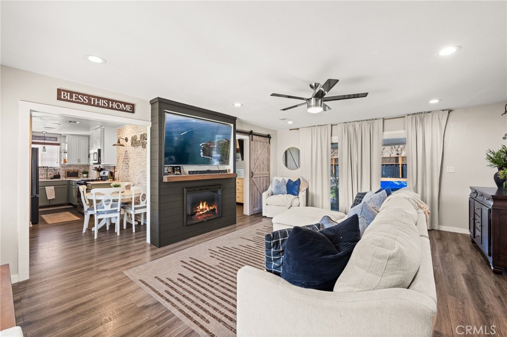 Charming 3 bedrooms, 2 bathrooms home with a garage that has been converted into a studio with its own private entry, kitchenette, half bathroom plus its own mini split adding heating and air to the unit. The backyard of this home offers RV Parking while still leaving you tons of room to enjoy your large covered patio area with a built in bbq, concrete area, turf, a gazebo, and steel pool that will all stay. The main home offers an updated kitchen with a walk in pantry, tons of counter space and cabinets for storage. Enjoy your living room with an accent wall for your TV, and a cozy electric fireplace. The primary bedroom offers the privacy of being on one side of the home with its own bathroom behind barn doors, featuring a double sink vanity and washer and dryer hookups for convenience. On the other side of the home you will find 2 bedrooms and a second full bathroom. The tile, and vinyl floors throughout this home give it a modern yet cozy feel. You do not want to miss this opportunity to own a great home North of the 210 freeway conveniently located.
