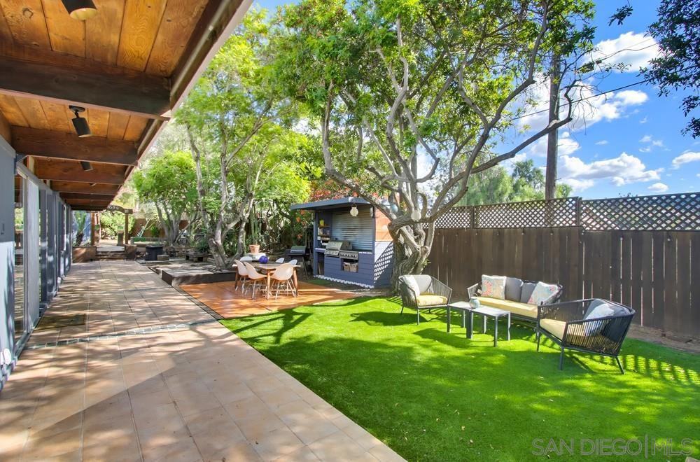 Step into a custom Mid-Century Modern gem in Bonita where sunlight pours through panoramic windows and the open great room/kitchen layout makes everyday living feel easy and connected. Thoughtful recent updates bring a designer touch—fresh, neutral finishes that enhance the home’s mid-century character rather than replace it. You’ll find three comfortable bedrooms plus a flexible optional fourth space that works beautifully as a guest suite, office, gym, or multi-gen room. The kitchen and baths have been refreshed with quartz counters, a generous island, stainless appliances, and plenty of storage—ready for casual meals or entertaining. Multiple living areas provide options for movie nights, homework zones, creative space, or a cozy reading corner, all leading naturally outdoors. The backyard is built for California living: an outdoor Thermador cooktop and grill, places to dine and unwind, mature trees, low-maintenance hardscape, and a turf area for play. A gated extended side yard adds even more flexibility, with the potential to reconfigure for extra off-street parking for a boat, trailer, or RV. All of this in one of Bonita’s most sought-after pockets close to parks, trails, schools, and freeway access. Opportunity for buyers seeking flexibility today and options tomorrow—ideal for multi-gen living, work-from-home, and entertaining. Convenient to parks, trails, schools, and freeway access.