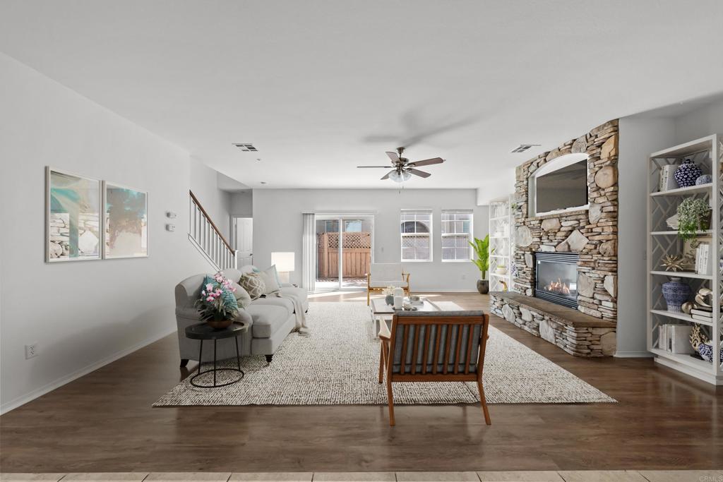 Move-in ready, this turnkey townhome offers a bright, open layout and a prime location near Temecula Valley Wine Country. New hard-surface flooring in the living room and bathrooms, new carpet on the second level, fresh paint and new blinds throughout, and new ceiling fans in nearly every room. An open-concept main living space overlooks the dining area and kitchen with a custom stone fireplace and direct access to the private outdoor patio. The kitchen boasts stainless appliances, including a new refrigerator, granite counters, tile backsplash, abundant cabinetry, walk-in pantry, and a center island with breakfast bar. The primary suite features a large walk-in closet with custom organizers and an ensuite bathroom with dual vanity, jetted soaking tub, and separate walk-in shower. Two additional bedrooms, full bath, and convenient upstairs laundry room complete the second level. An attached two-car garage provides direct access and additional storage space. Community amenities include a pool & spa, playground, and Sheffield Park is just a short walk away. Located within the Temecula Valley Unified School District and close to shopping, dining, and local wineries. Enjoy the best of Southern California living with nearby hiking trails, fishing, lakes, conservation areas, hot springs, and more.