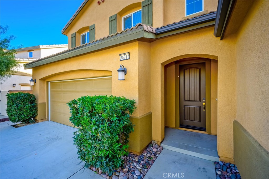 Welcome to 36712 Summer Dain Ln. in Wildomar — a beautifully maintained two-story home tucked into a quiet cul-de-sac in a desirable, well-kept community with a private neighborhood park. This spacious 4-bedroom, 3-bath home offers approximately 2,389 sq. ft. of thoughtfully designed living space on a 6,534 sq. ft. lot. Built in 2016, the home blends modern comfort with functional design and has been recently refreshed with brand-new interior paint and new carpet throughout the upstairs. A grand entry with soaring ceilings and abundant natural light creates an inviting first impression. The main level features a bedroom and ¾ bath, ideal for guests, multigenerational living, or a home office. The open-concept kitchen is designed for everyday living and entertaining, complete with a large center island, oversized walk-in pantry, and seamless flow to the dining and living areas. Upstairs, a versatile loft provides flexible space for a media room, play area, or additional lounge. The spacious primary suite offers a relaxing retreat with dual vanities, a separate soaking tub and shower, and a large walk-in closet. Additional features include central A/C, tankless water heater, and an oversized two-car garage with epoxy flooring and direct home access. Solar panels help reduce energy costs and support efficient living. The backyard features low-maintenance, drought-tolerant landscaping with water-efficient irrigation. With thoughtful upgrades, recent cosmetic updates, energy-conscious features, and a cul-de-sac location that offers both privacy and community, this home is a standout opportunity. Come see what makes 36712 Summer Dain Ln. a wonderful place to call home.